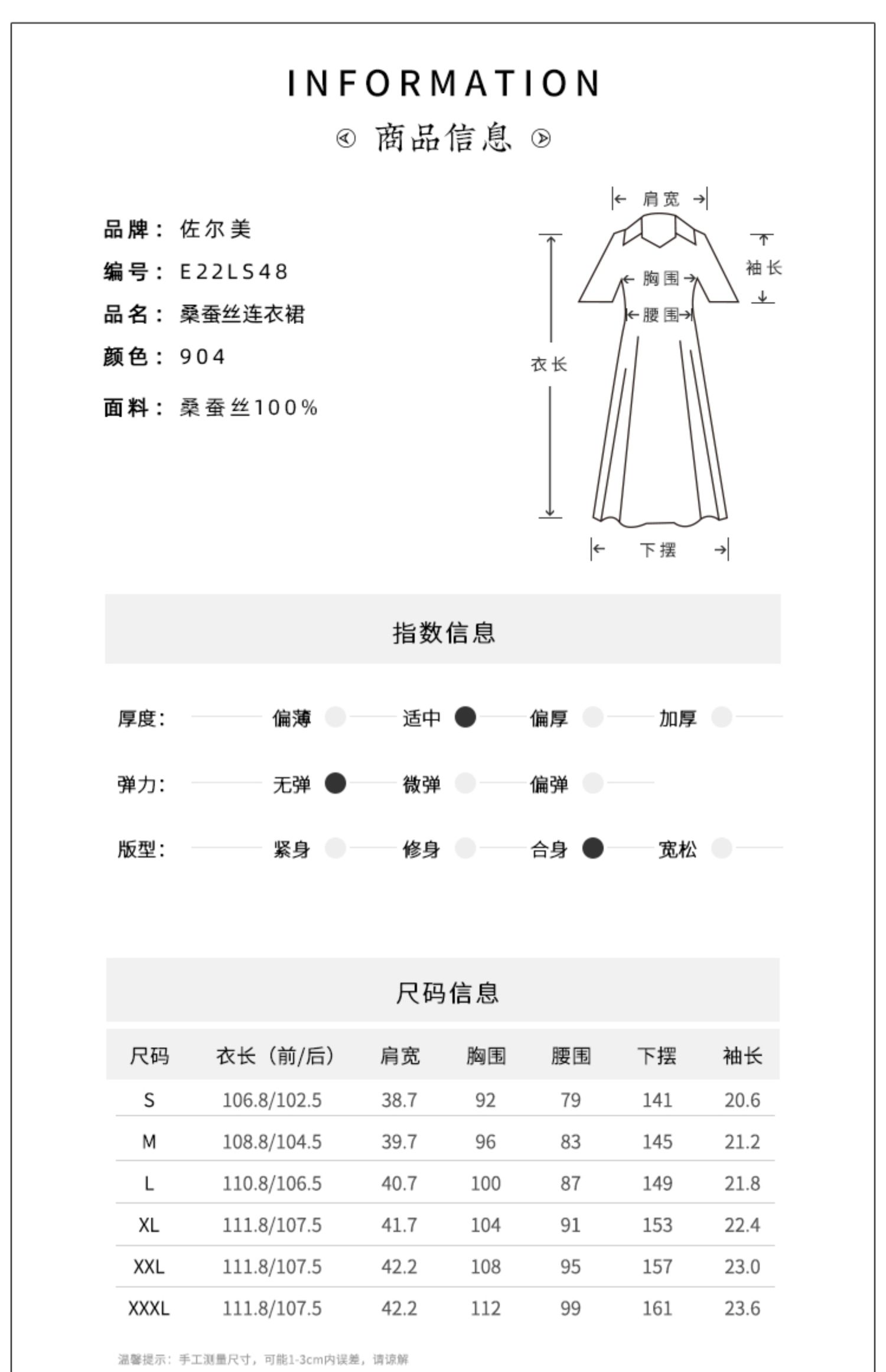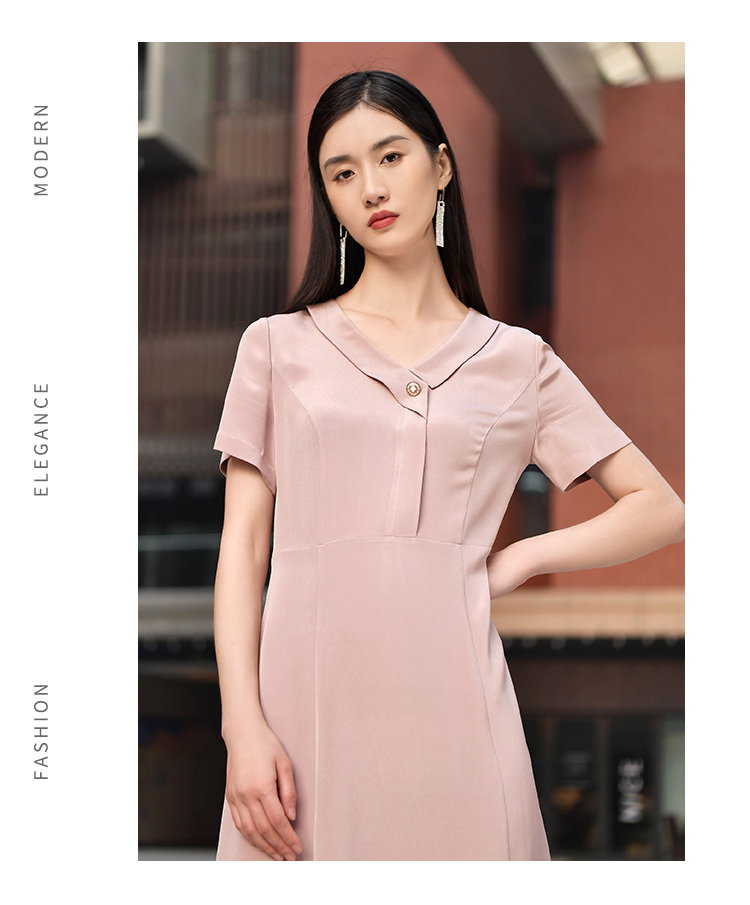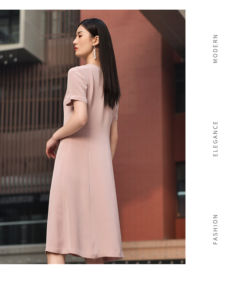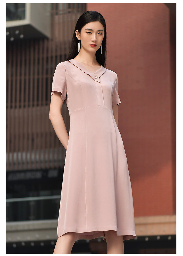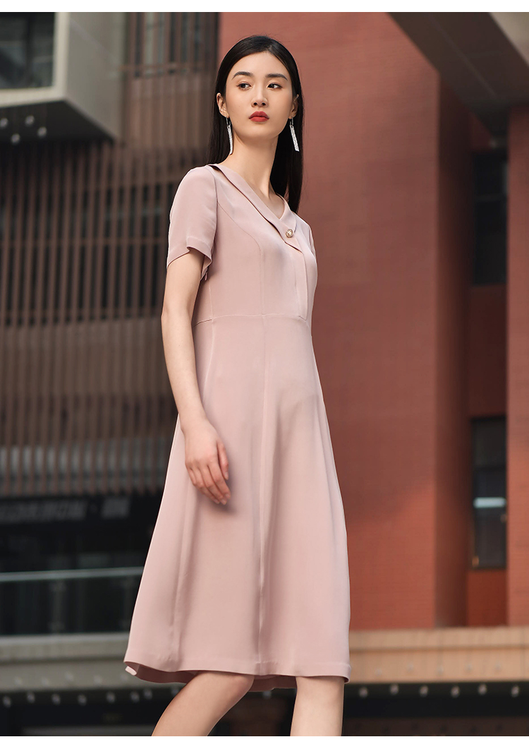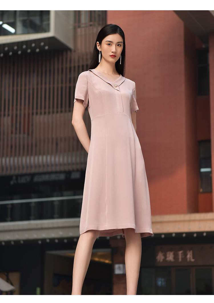 佐尔美2022夏季新款 100%桑蚕丝真丝通勤气质纯色连衣裙女E22LS48