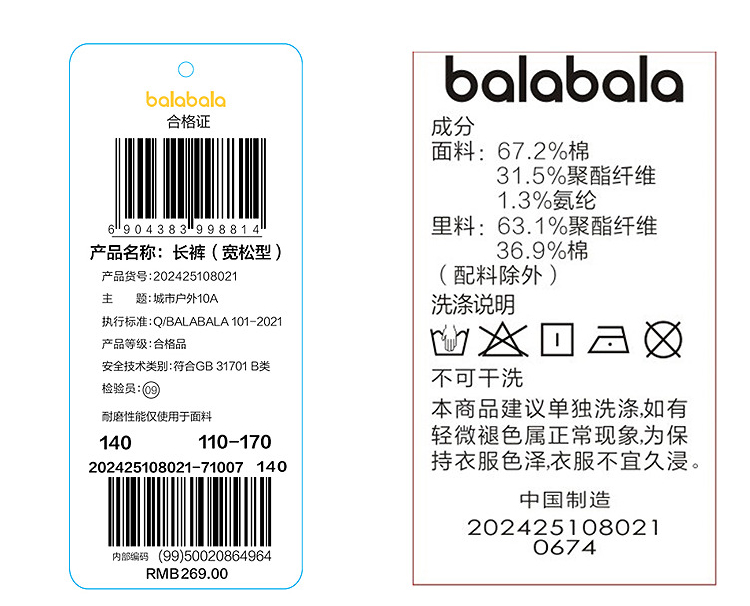 【商场同款】巴拉巴拉童装儿童裤子女童长裤2025冬新款大童弯刀裤