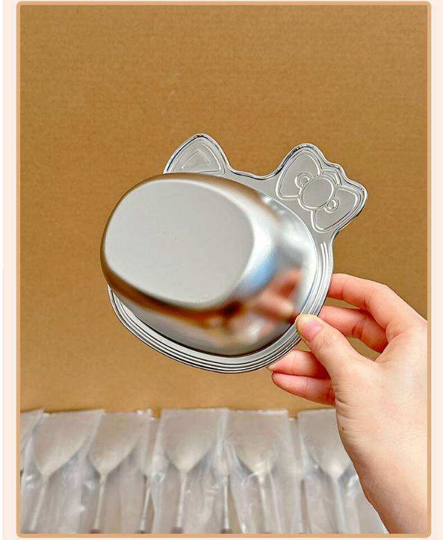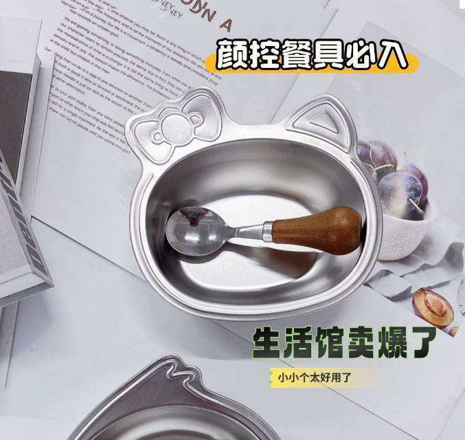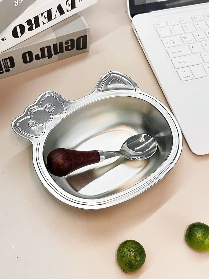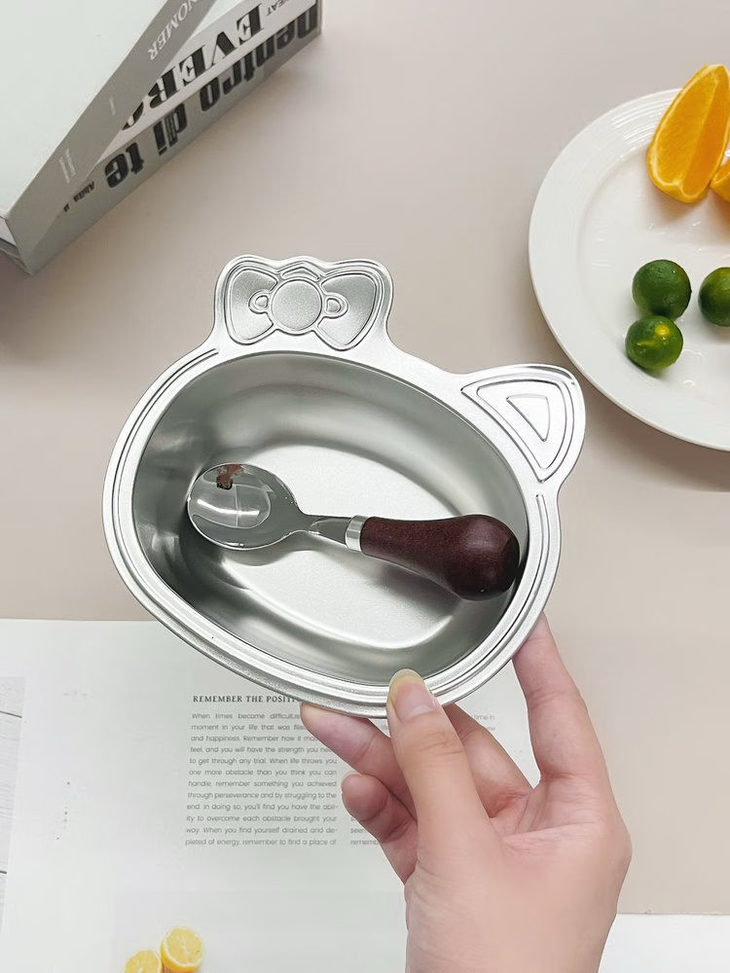 萌趣颜值+贴心套装 🎀猫耳+蝴蝶结,质感高级又治愈,女宝男宝都爱扒着碗吃饭~ 🥄配套木柄304钢勺:木柄温润不冰手,勺头大小刚好,喂辅食/挖甜品都丝滑!
