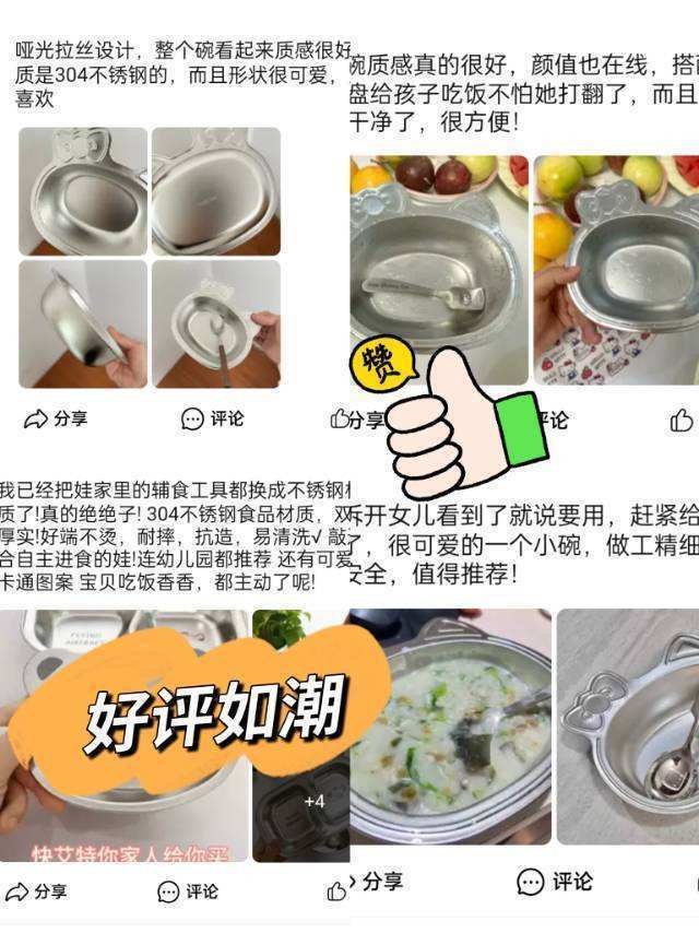 1碗N用,全家共享 👶宝宝用:当辅食碗→容量刚好,喂饭/自主进食都顺手,萌趣造型让娃主动张嘴干饭~ 👩大人用:当燕麦碗/甜品碗→颜值高到发朋友圈,不锈钢不吸味,吃完一冲就干净!