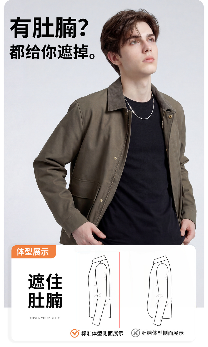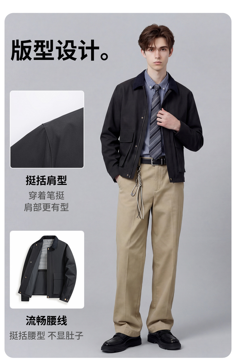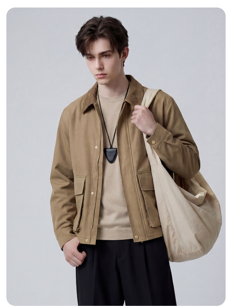 【挺括有型】圣得西复古轻工装通勤翻领夹克春装男士2026新款外套