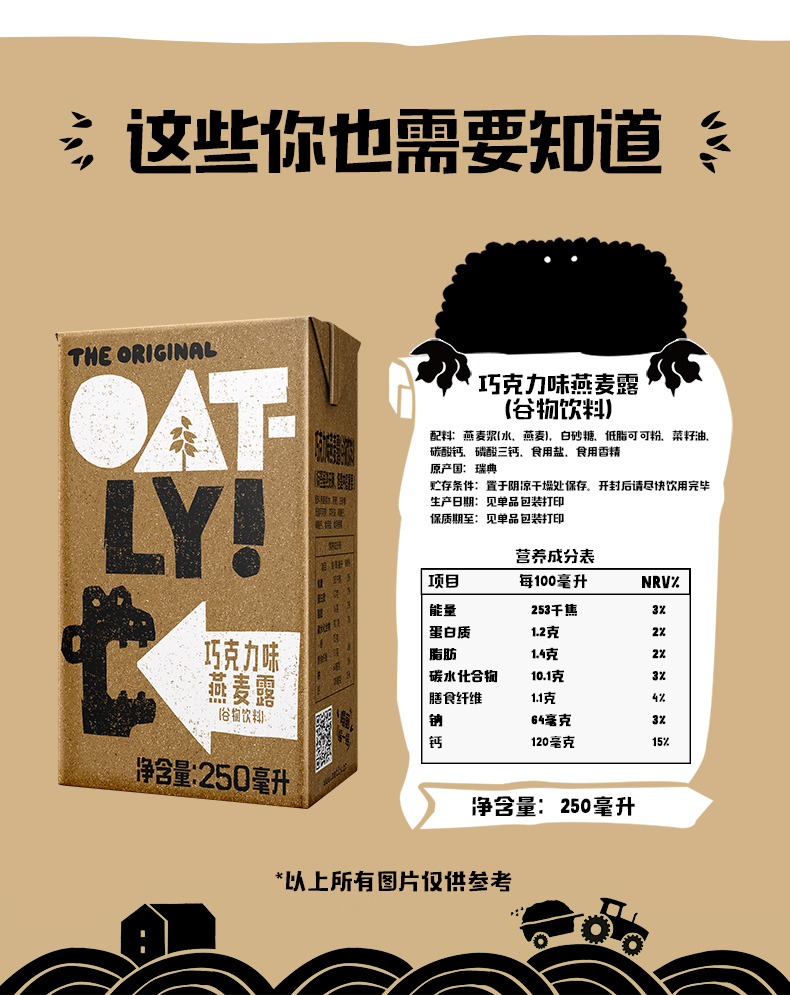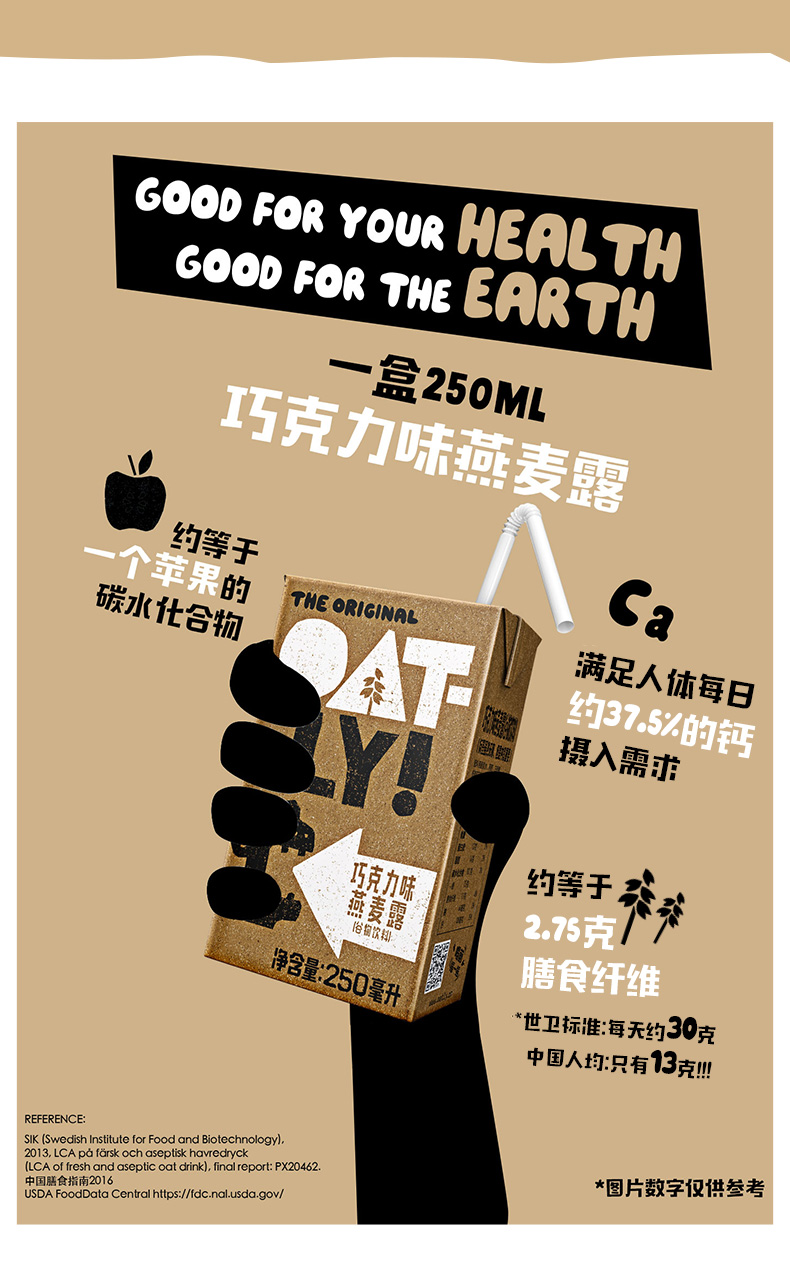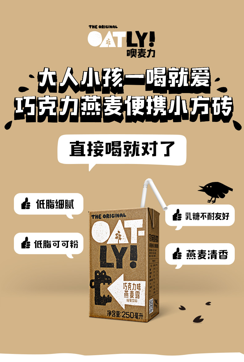 瑞典OATLY噢麦力燕麦奶谷物饮料巧克力味植物蛋白早餐奶250ml