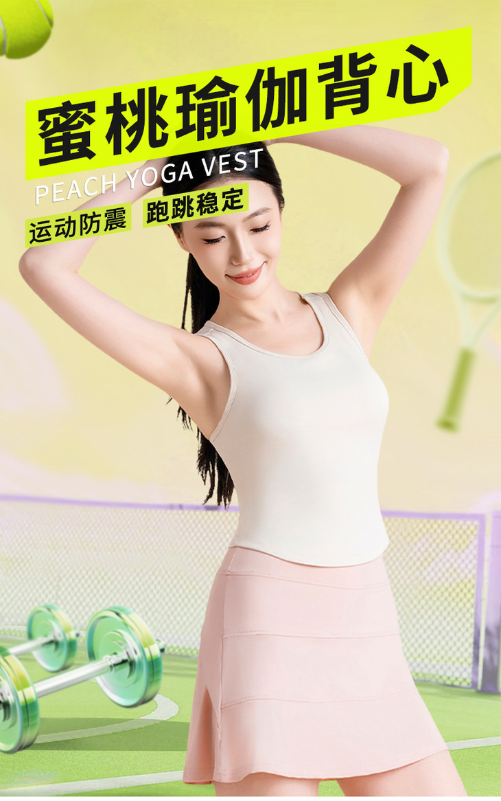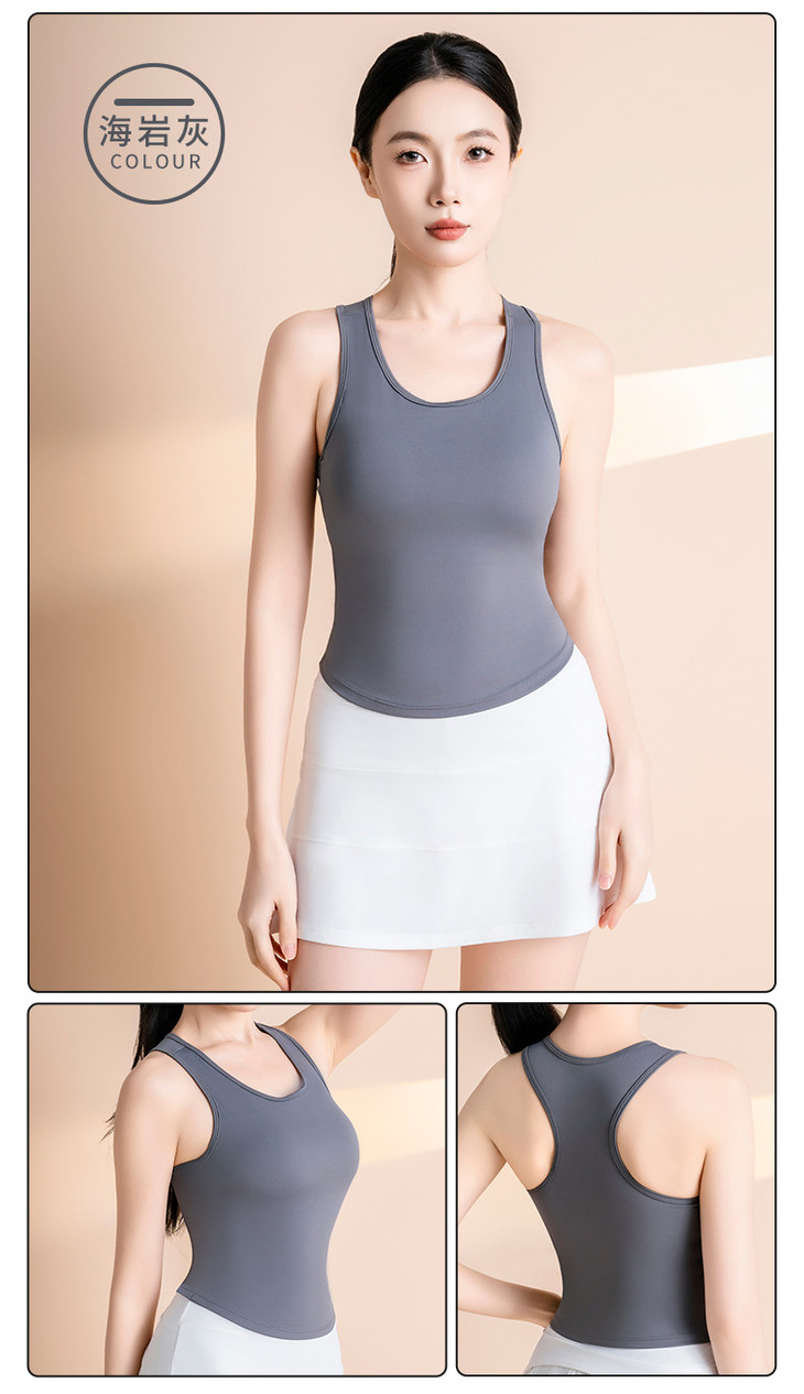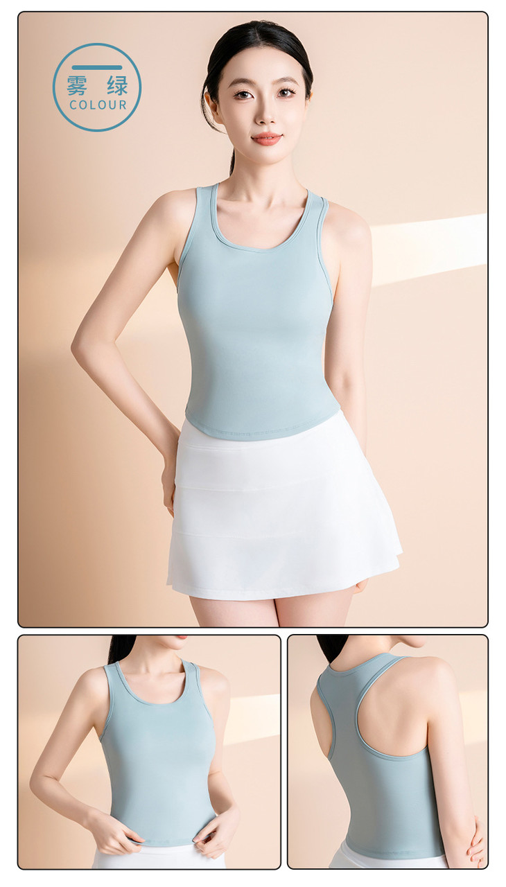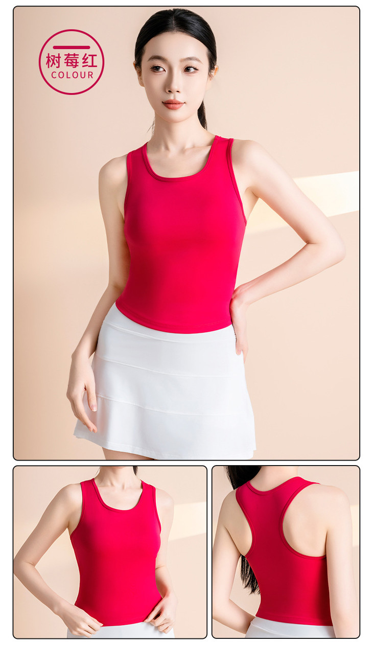 蜜桃高弹固定杯圆领紧身瑜伽服 女背心防走光不跑杯运动健身衣