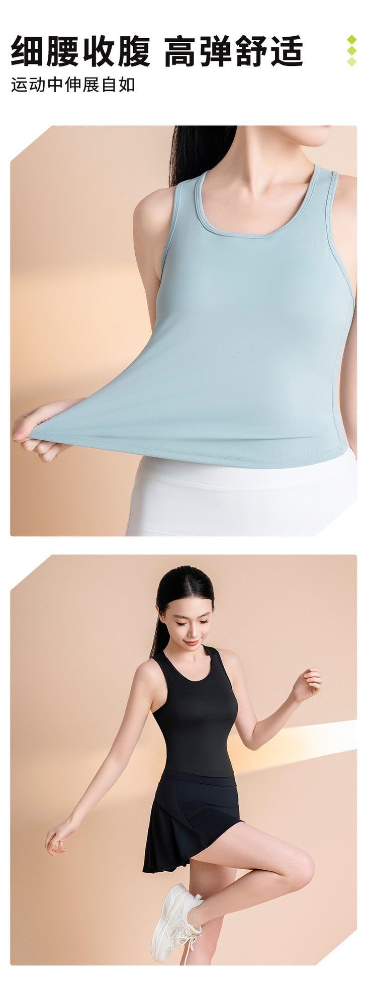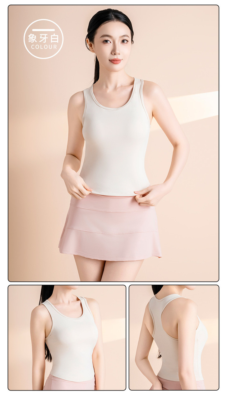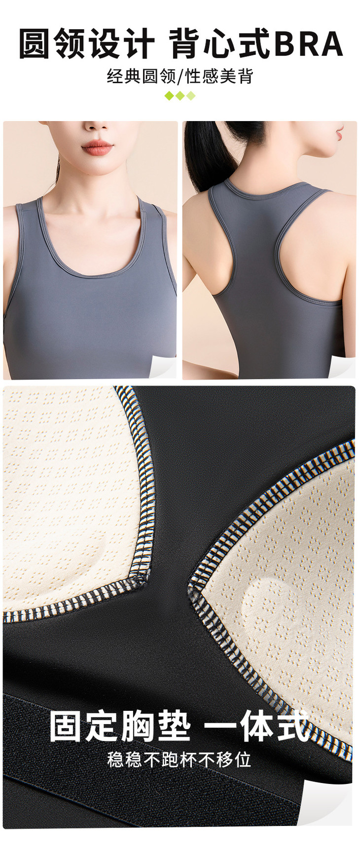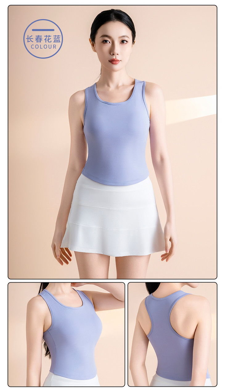蜜桃高弹固定杯圆领紧身瑜伽服 女背心防走光不跑杯运动健身衣