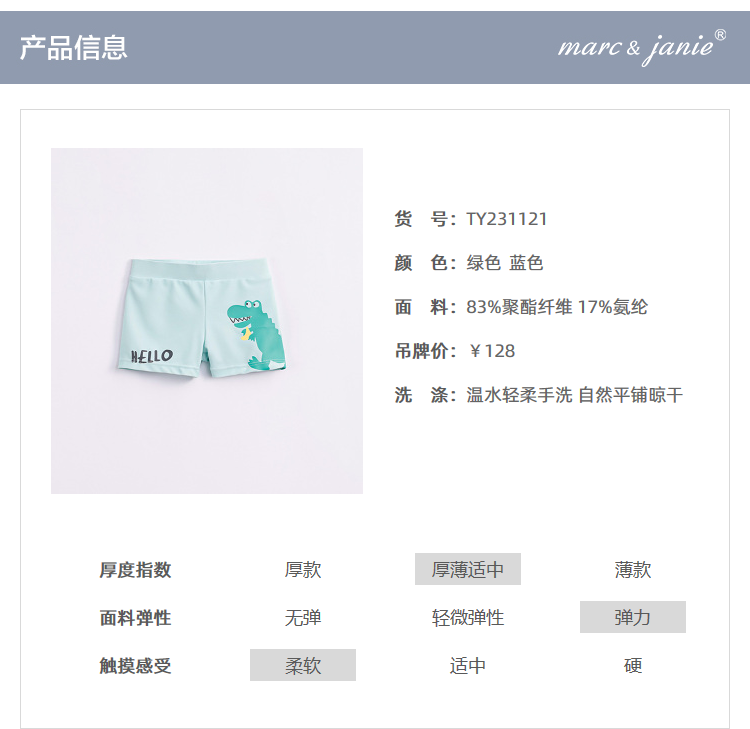 【凉感防晒】马克珍妮夏装 男童游泳短裤 儿童舒适平角泳裤231121