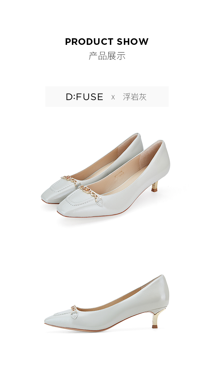 DFuse迪芙斯秋季羊皮方头链条细跟单鞋女高跟鞋DF33111006