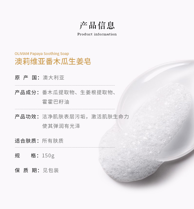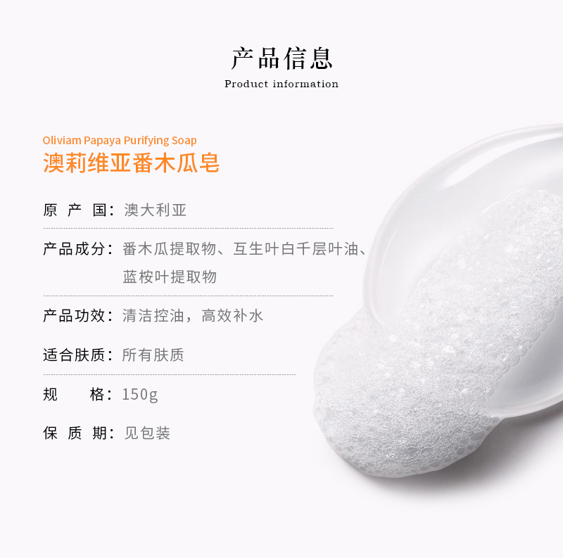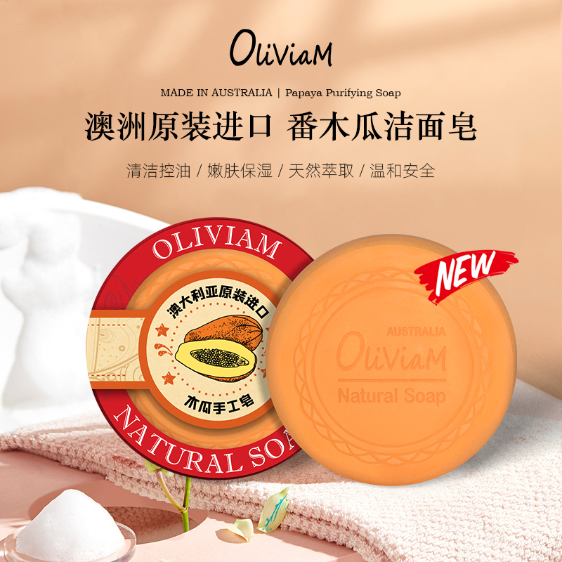 【中欧班列精选】ALWY 澳洲洁面皂 原装进口Oliviam/澳莉维亚番木瓜洁面皂/番木瓜生姜皂/番木瓜羊奶滋润养肤皂150g