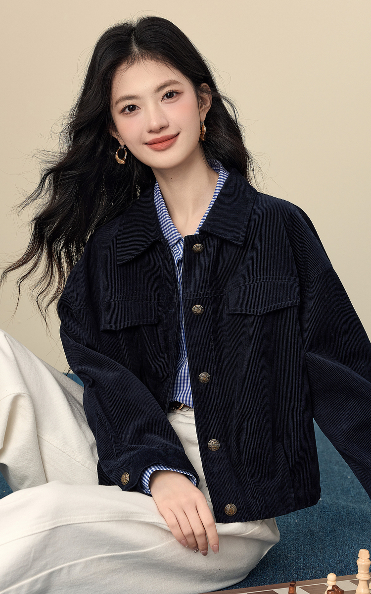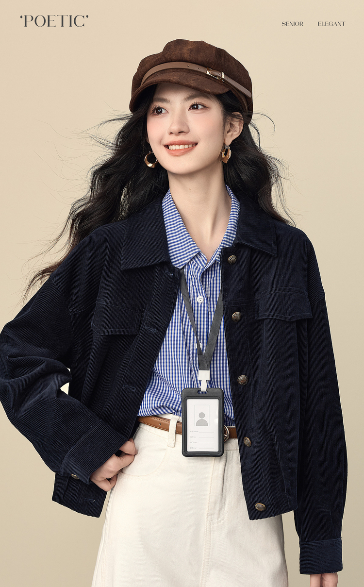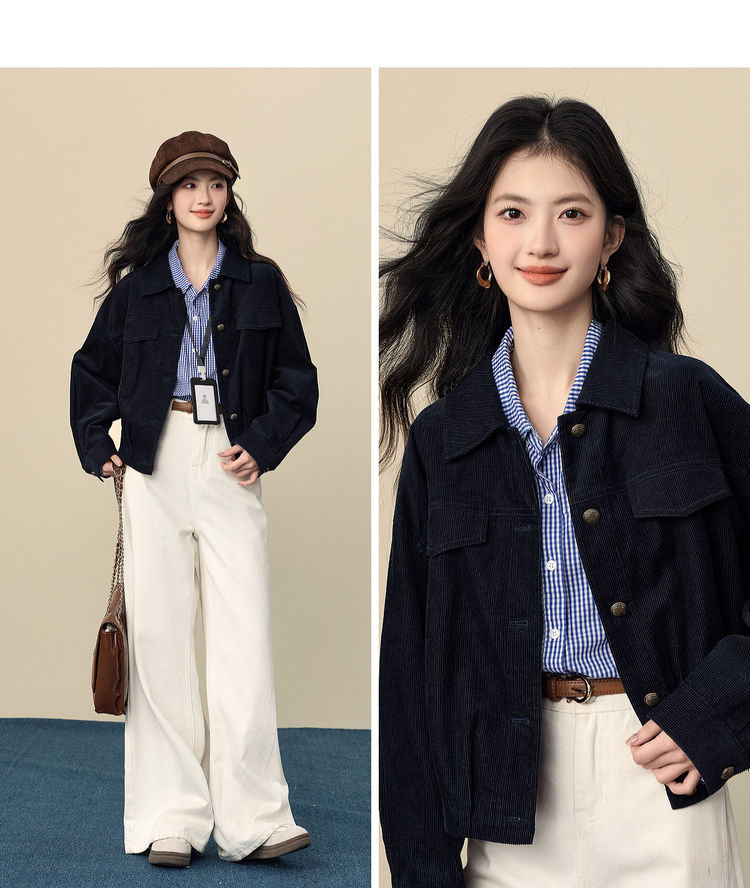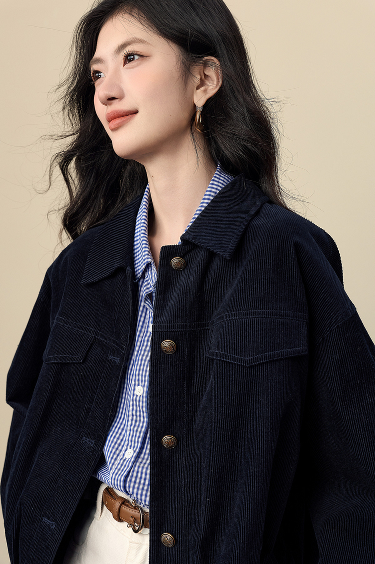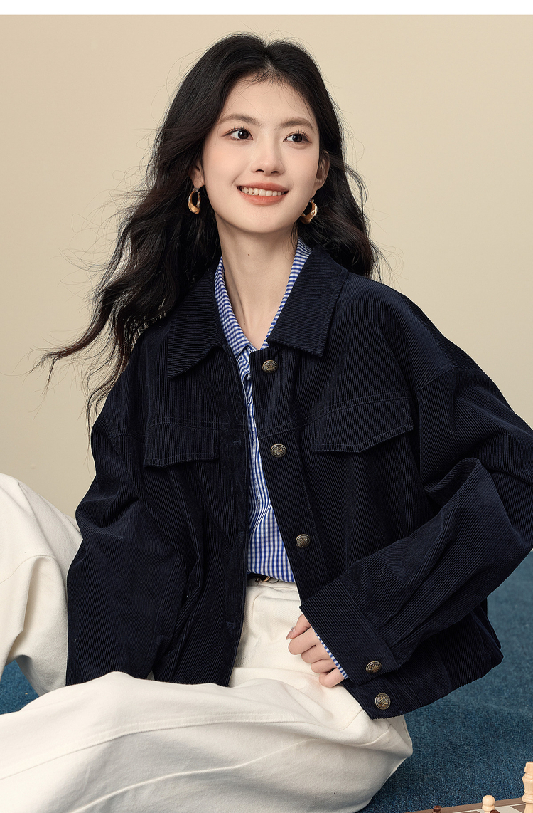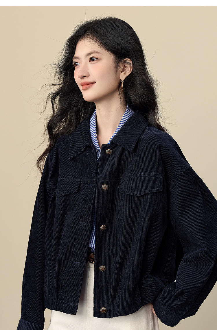 【12/17新品】熙世界灯芯绒短外套女小个子2025秋冬新款松弛感落肩气质休闲上衣
