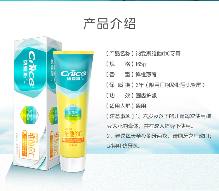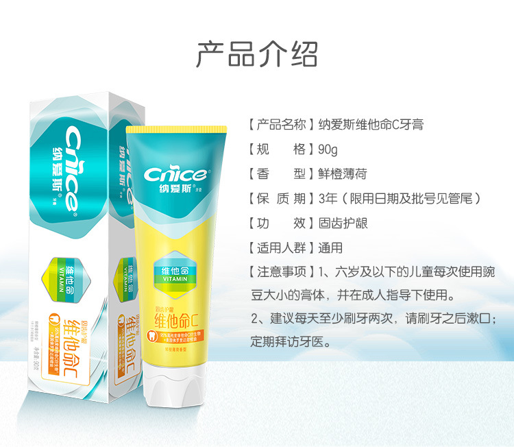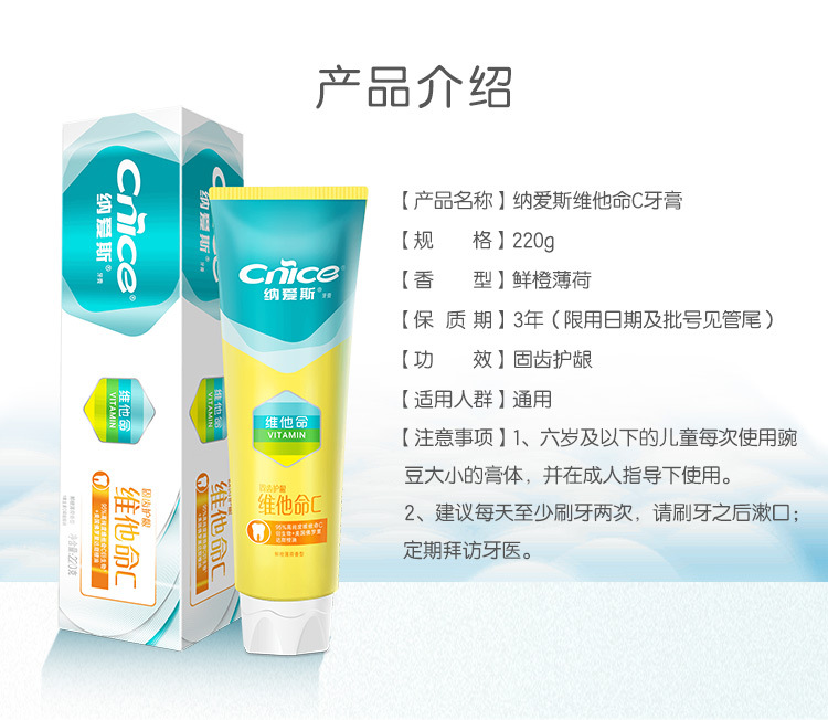 「鲜橙薄荷香型」纳爱斯营养维c牙膏 维他命c系列去牙渍防蛀护龈清新香口腔护理