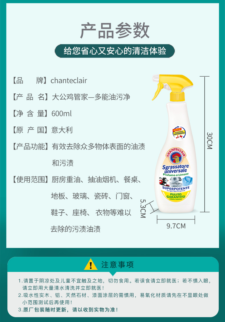 大公鸡管家 多能油污净(柠檬)600ml