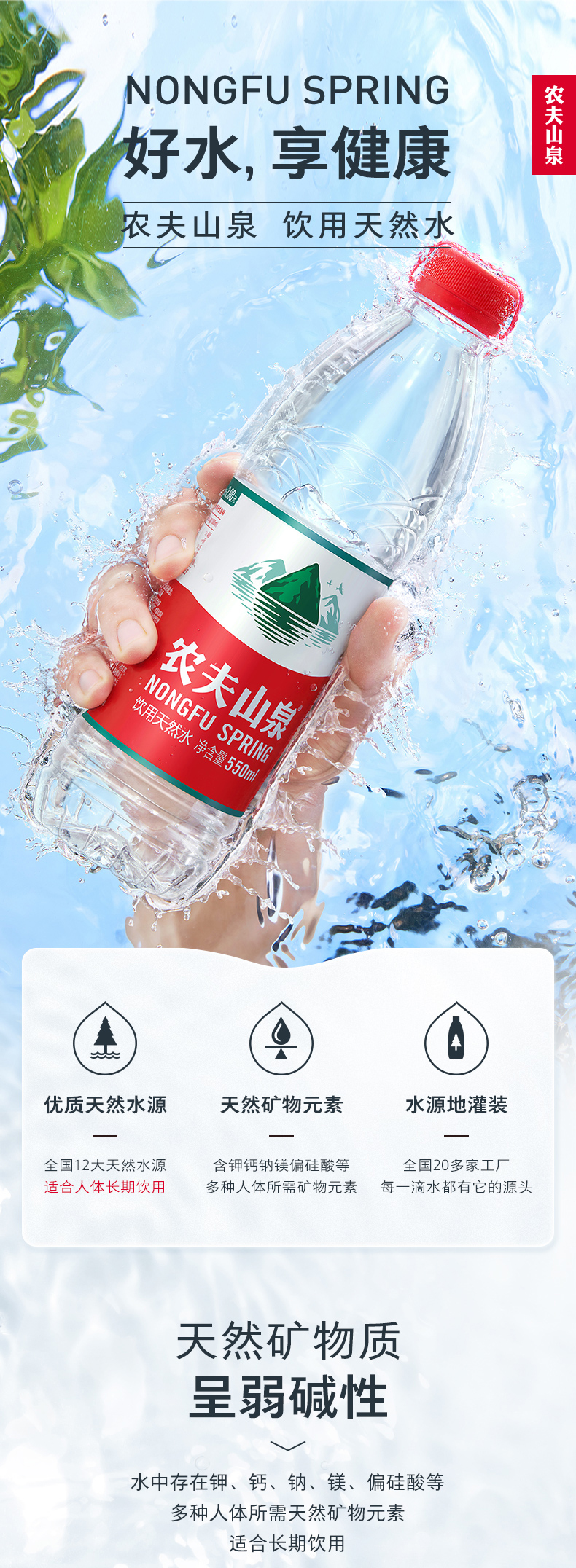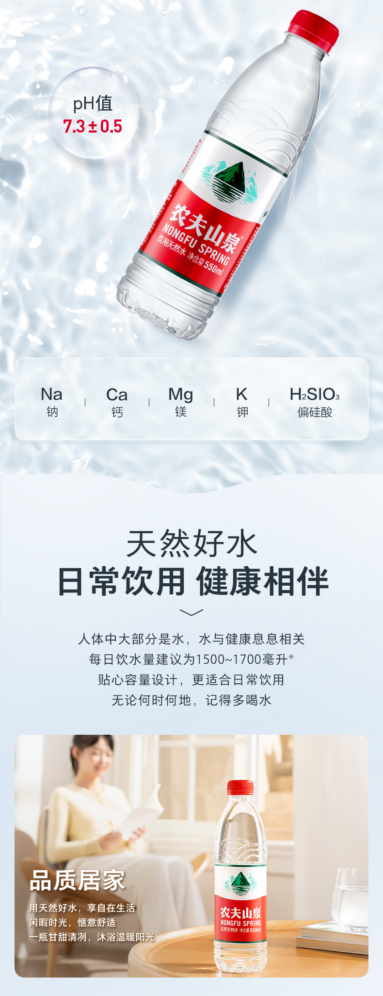 农夫山泉 饮用天然水 550ml*24瓶 箱装 塑膜 新老包装随机发货