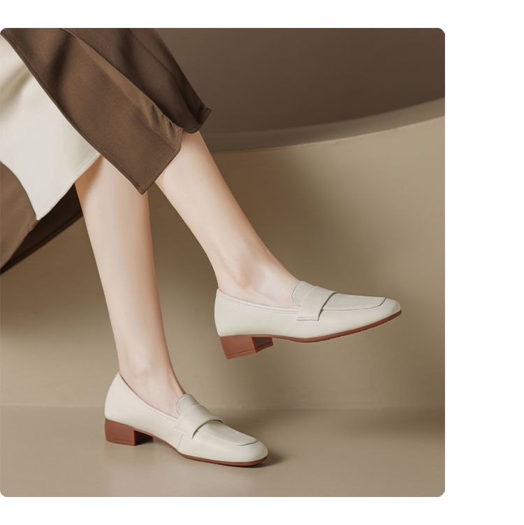 ZHR乐福鞋软底通勤单鞋女2023秋季新款中跟法式百搭小皮鞋jk制服