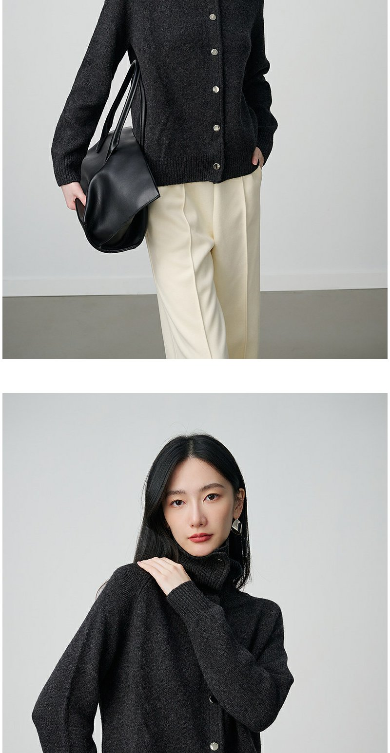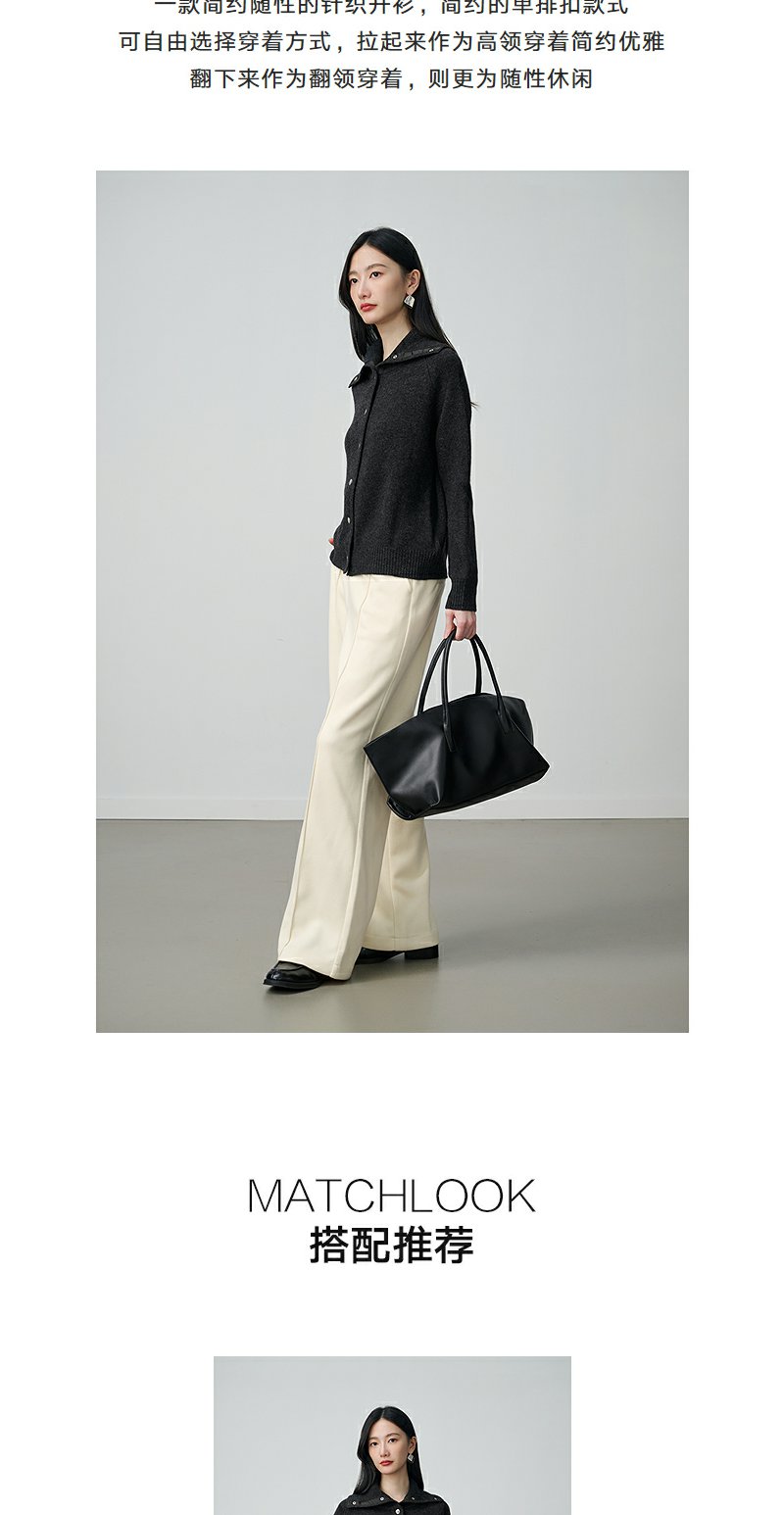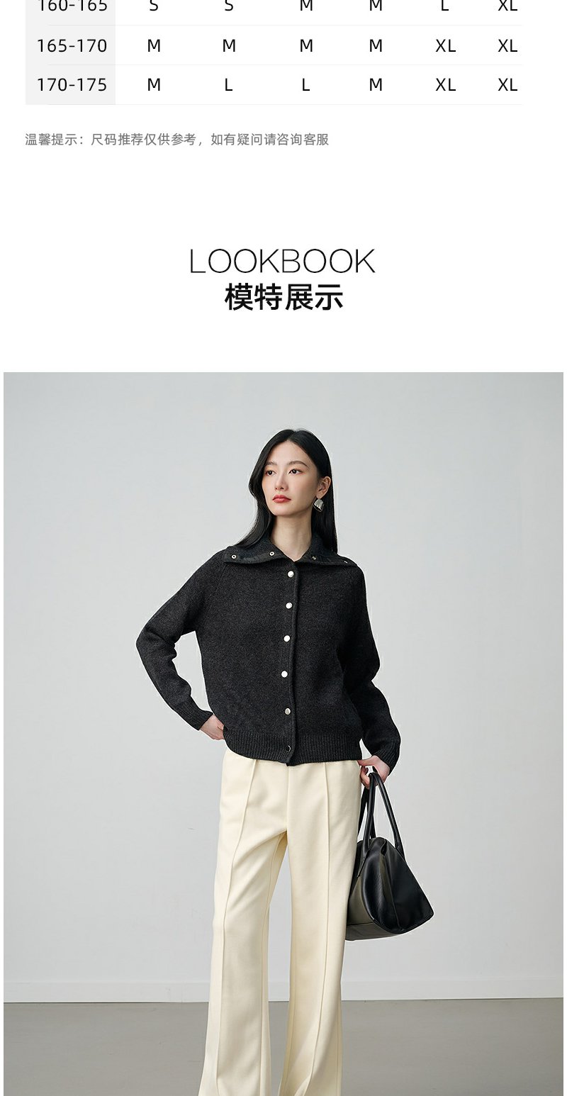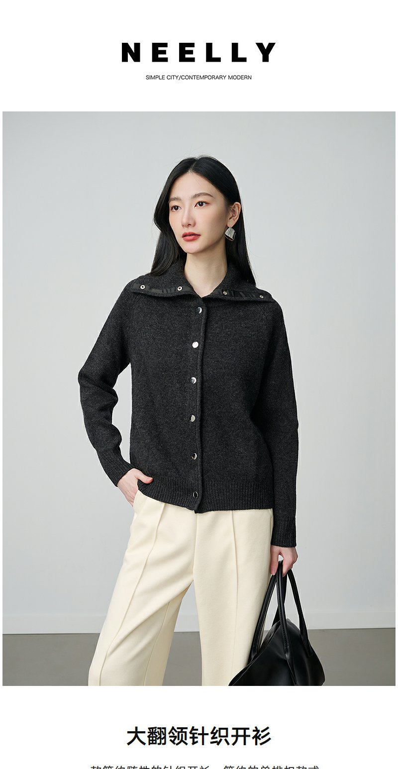 NEELLY纳俪商场同款冬季新款翻领简约随性针织开衫女亲肤百搭外套N25104A07705