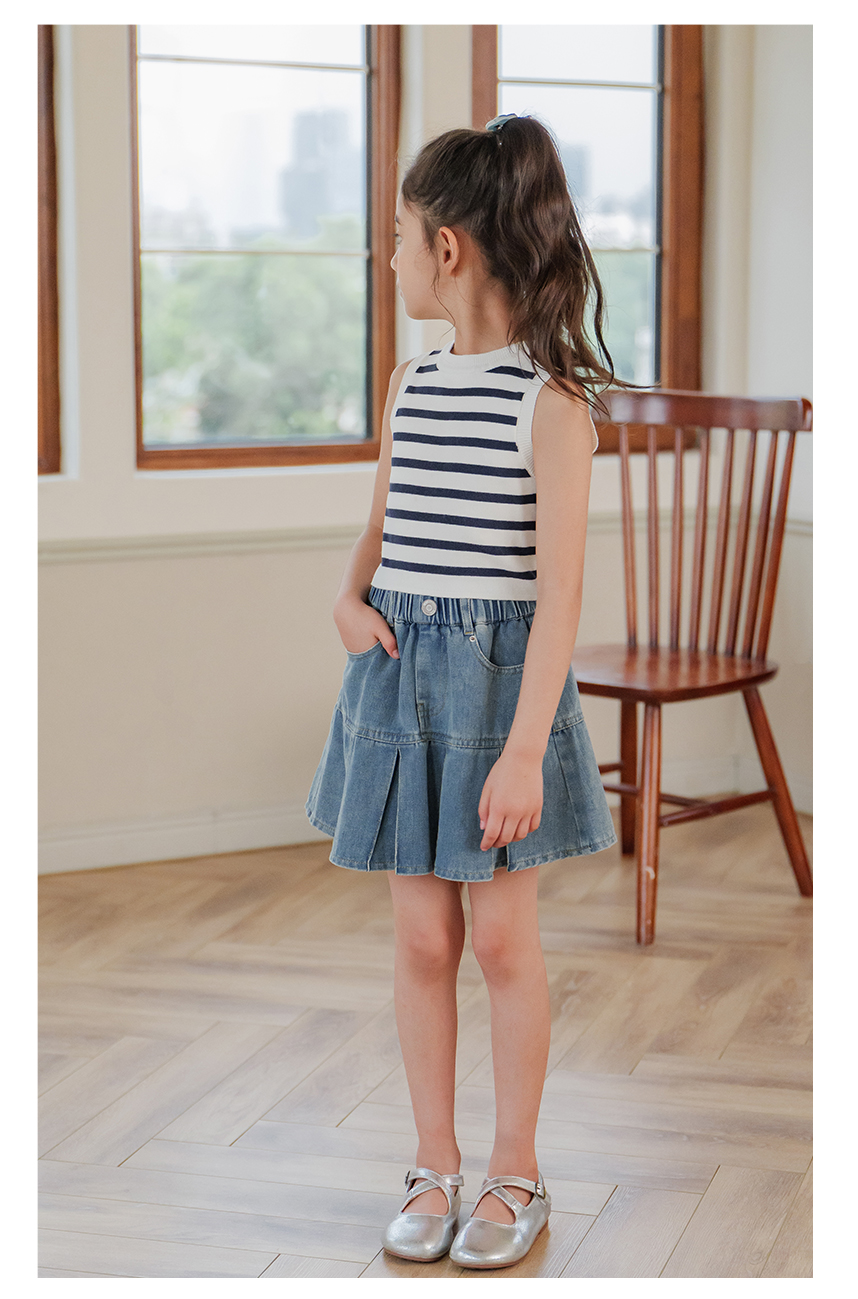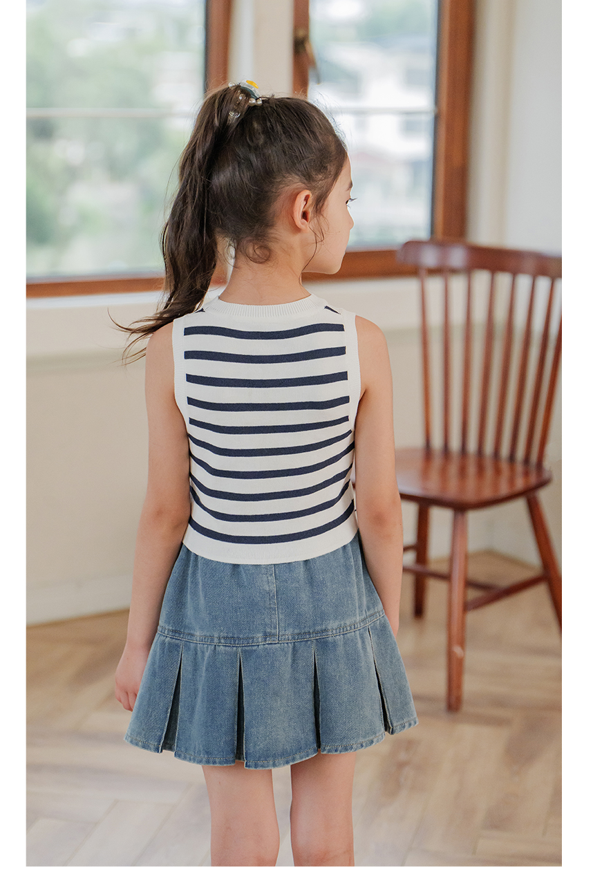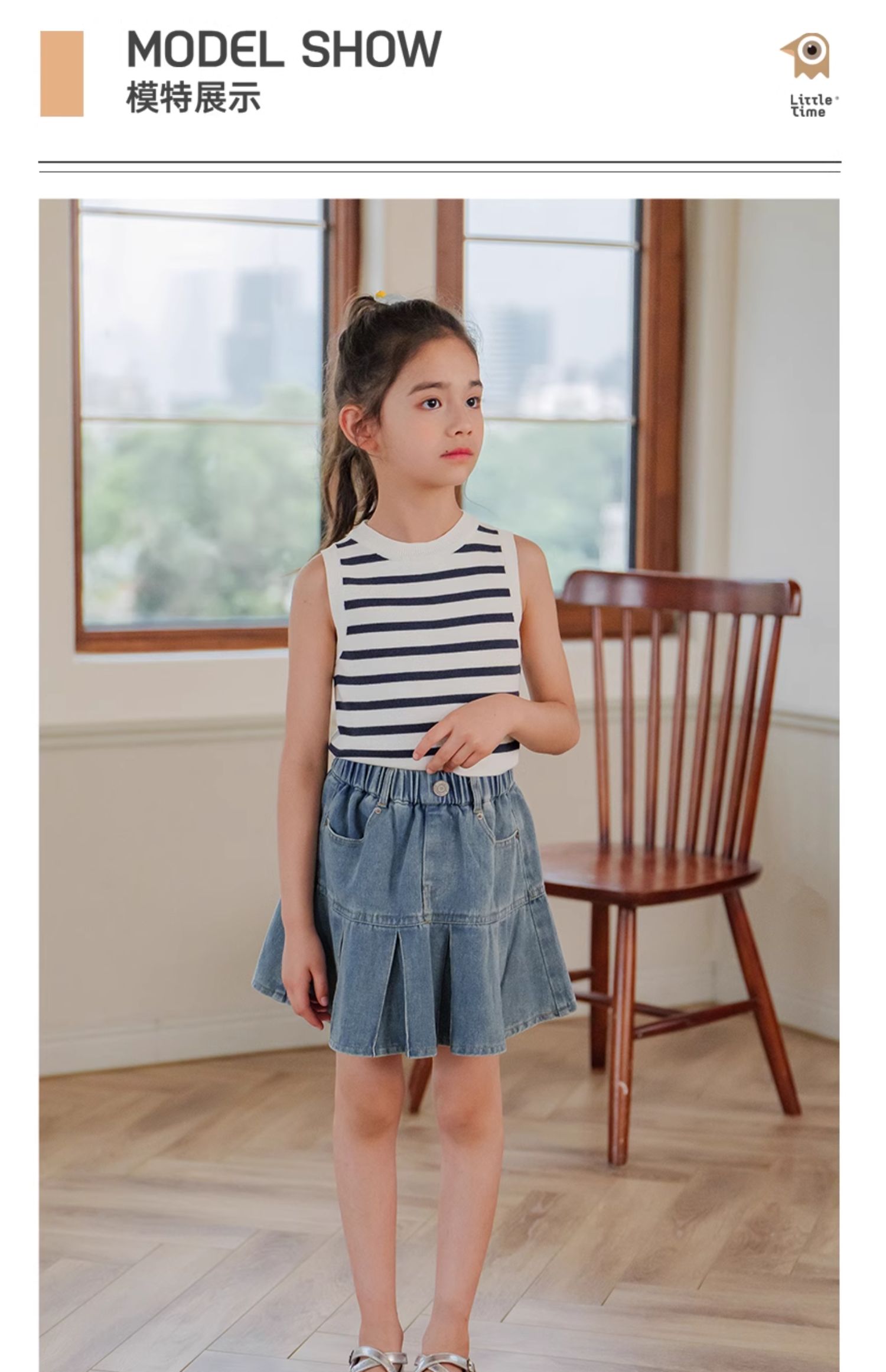 littletime女童针织背心2024夏季新款无袖条纹儿童T恤针织衫