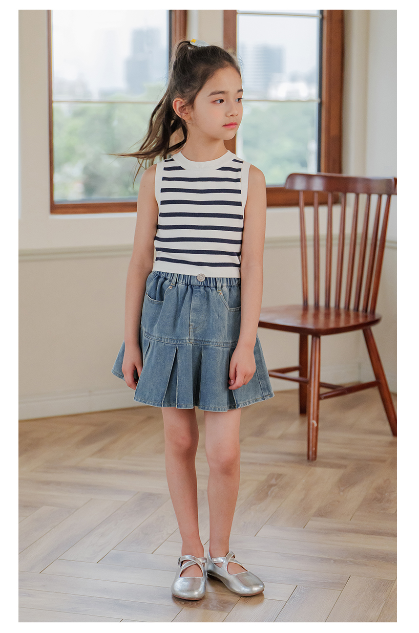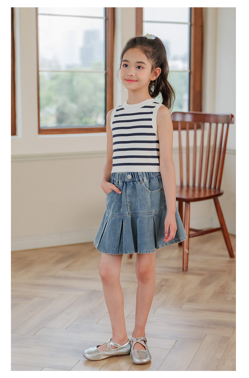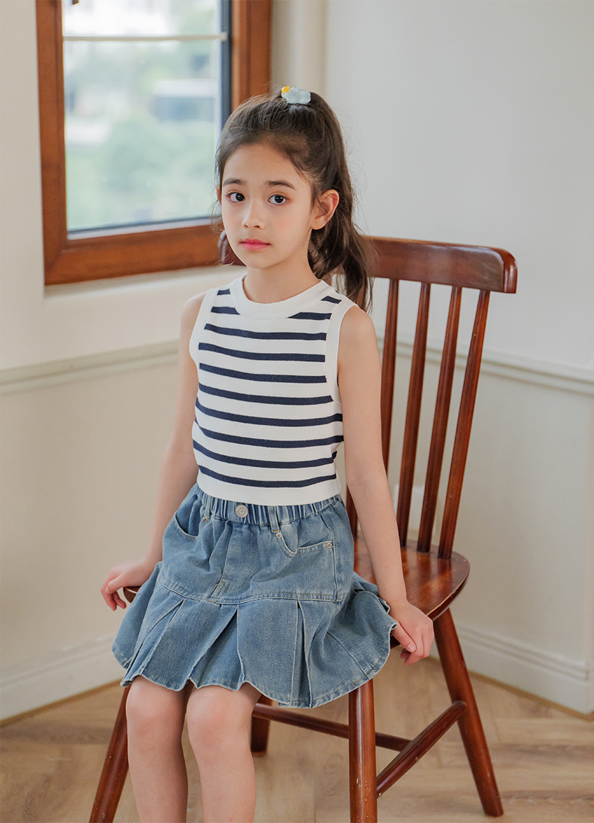 littletime女童针织背心2024夏季新款无袖条纹儿童T恤针织衫