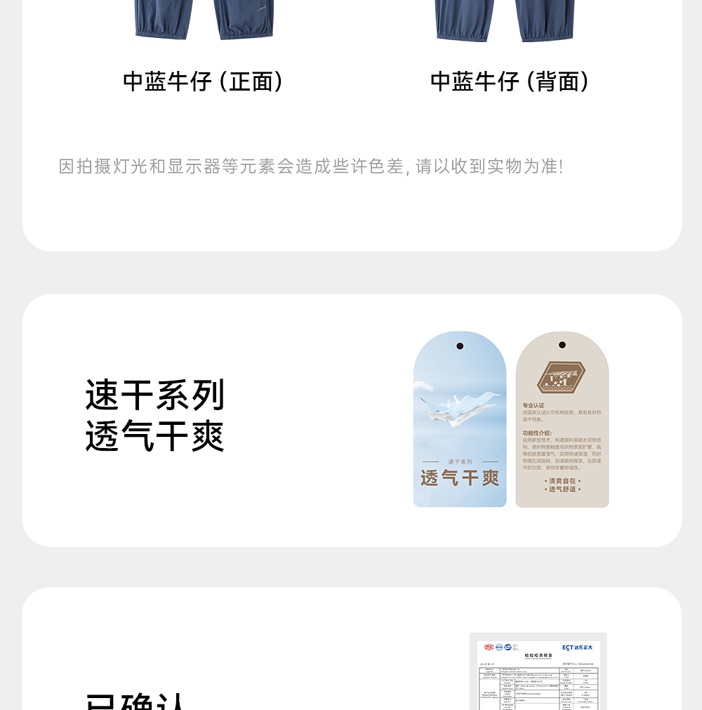 英氏儿童裤子夏季速干透气薄男童裤子2025新款九分裤YRKCJ2R070A
