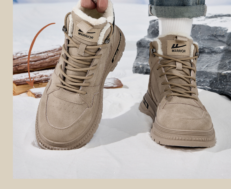 回力男鞋工装鞋2025冬季新款加绒加厚雪地靴旋钮免系带马丁靴男款
