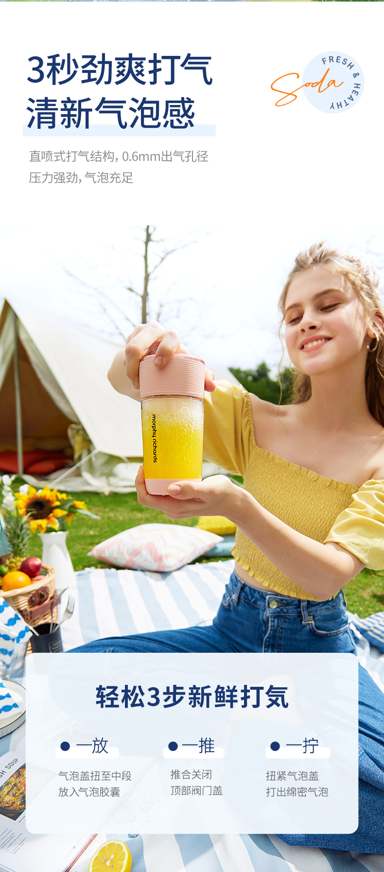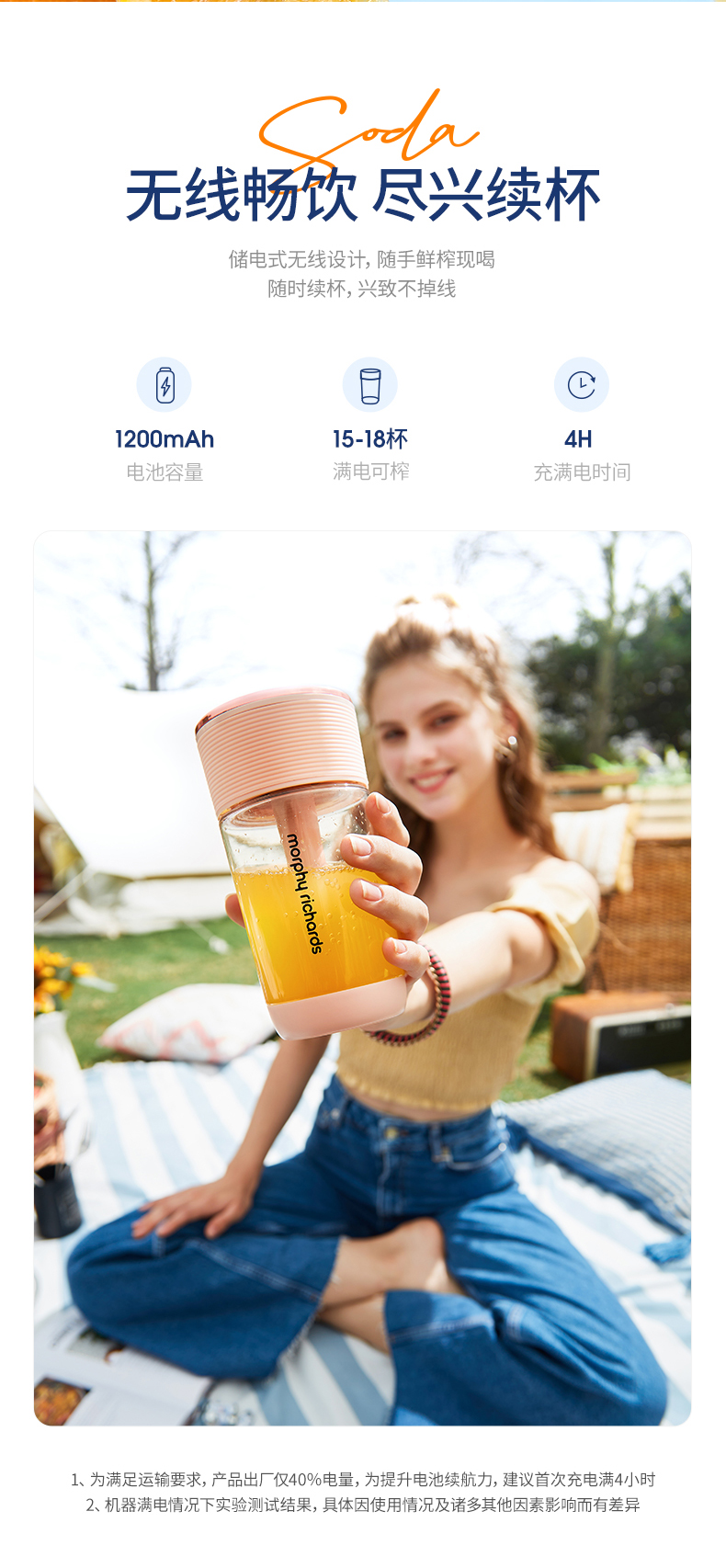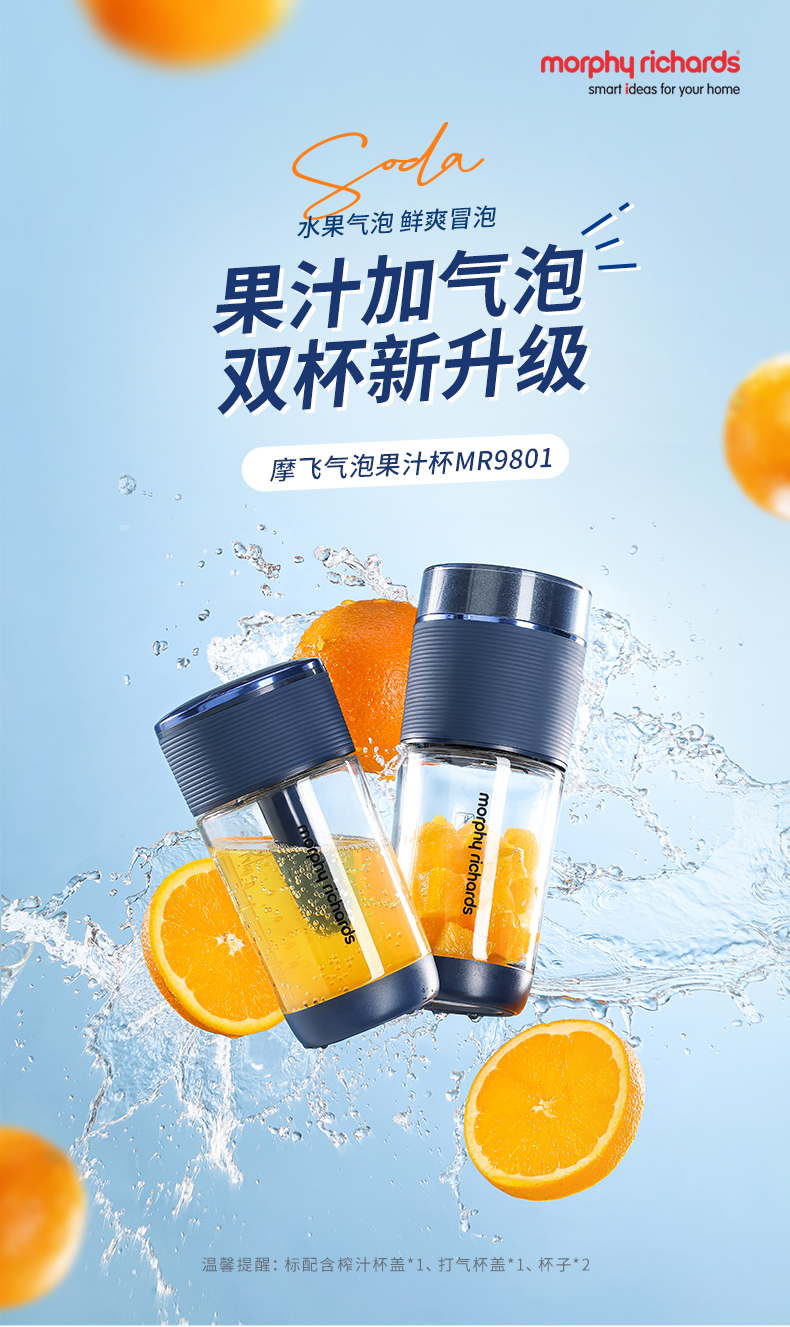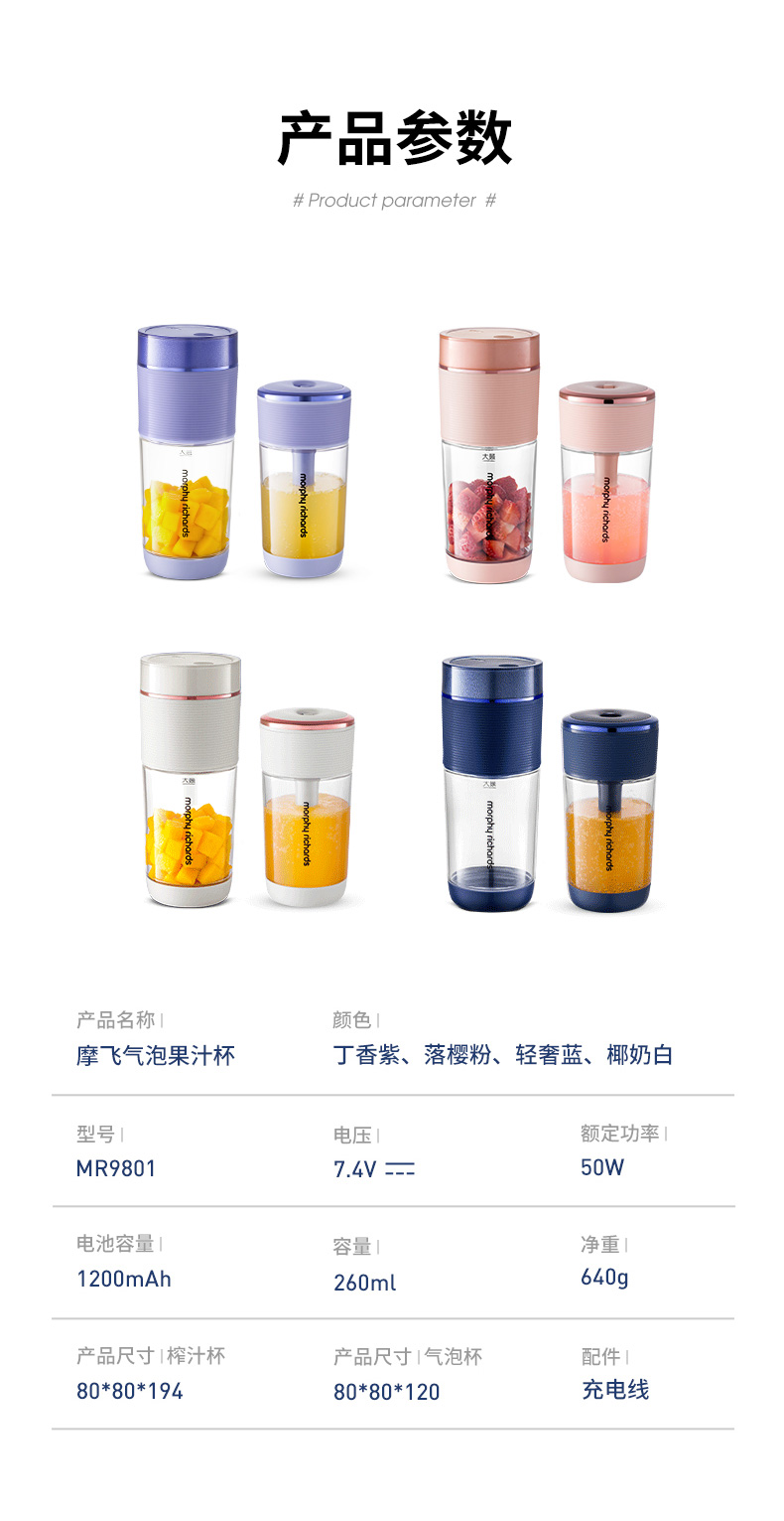 摩飞气泡榨汁机无线充电迷你果汁杯小型便携式果汁机水果榨汁杯