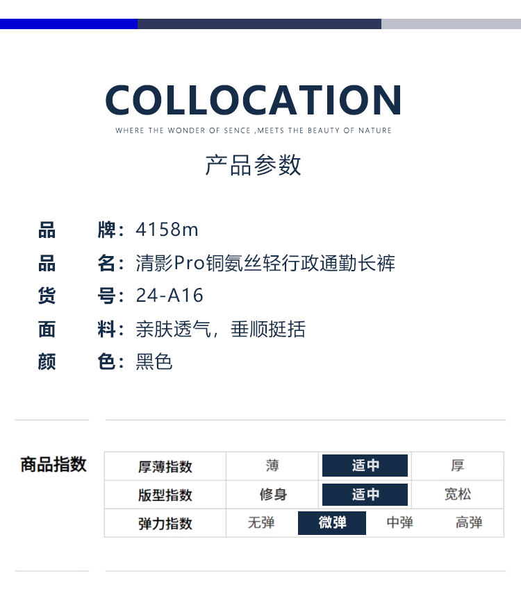 4158m 清影Pro铜氨丝轻行政通勤长裤