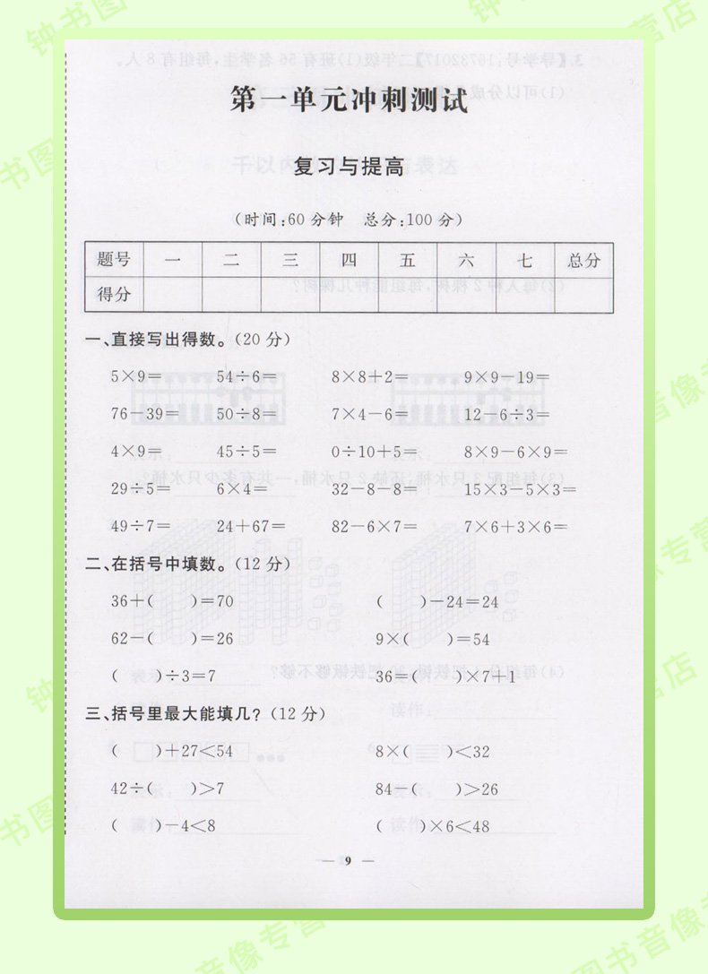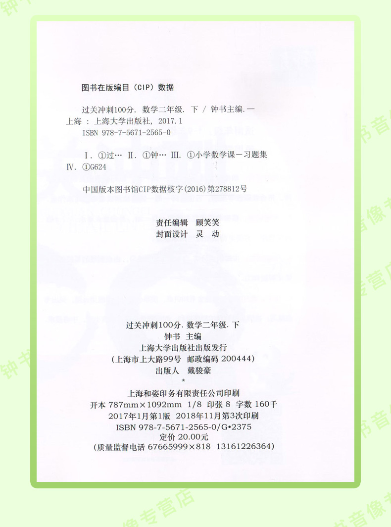 钟书金牌 过关冲刺100分 数学 2年级下册/二年级第二学期 上海小学教材教辅同步配套试卷周考月考单元测试卷期中期末满分冲刺卷
