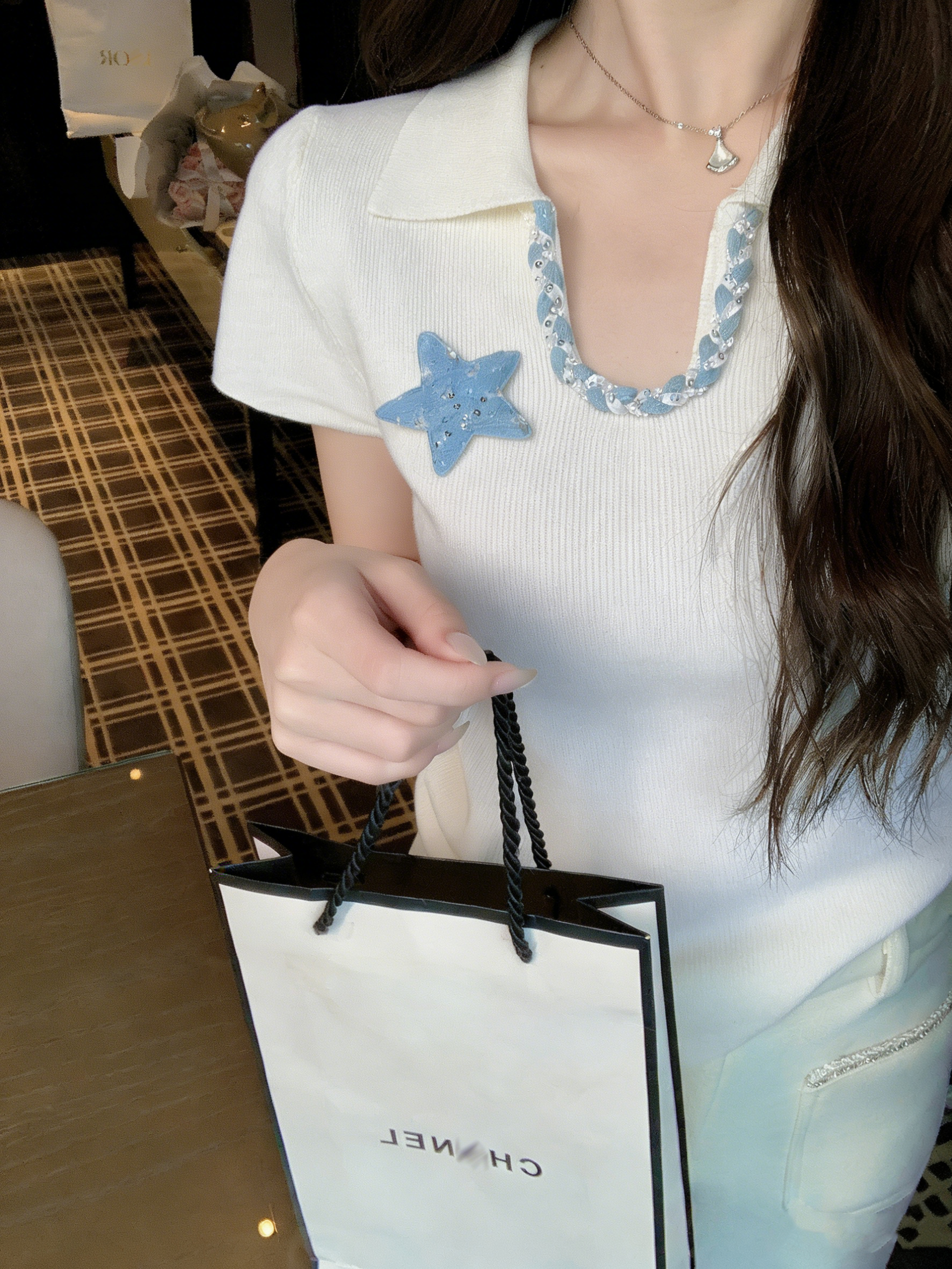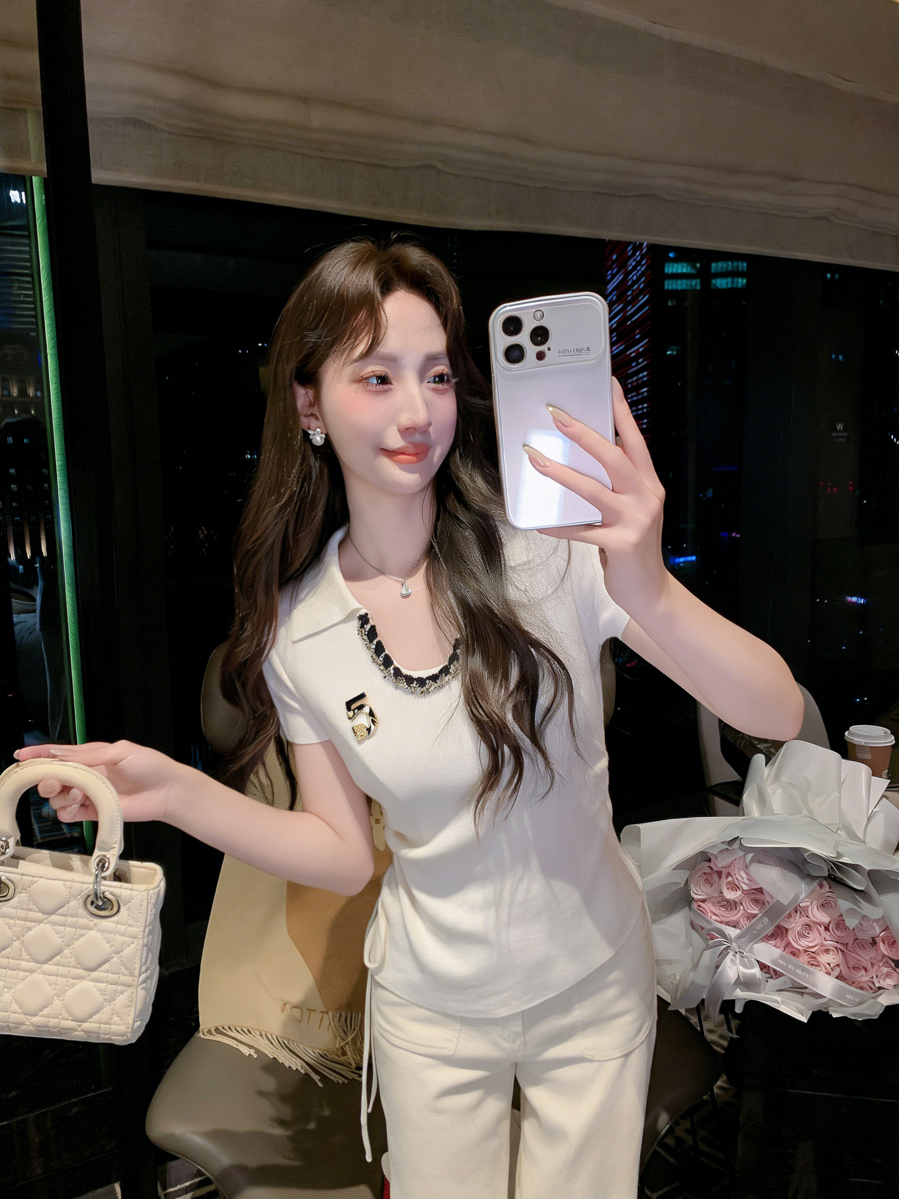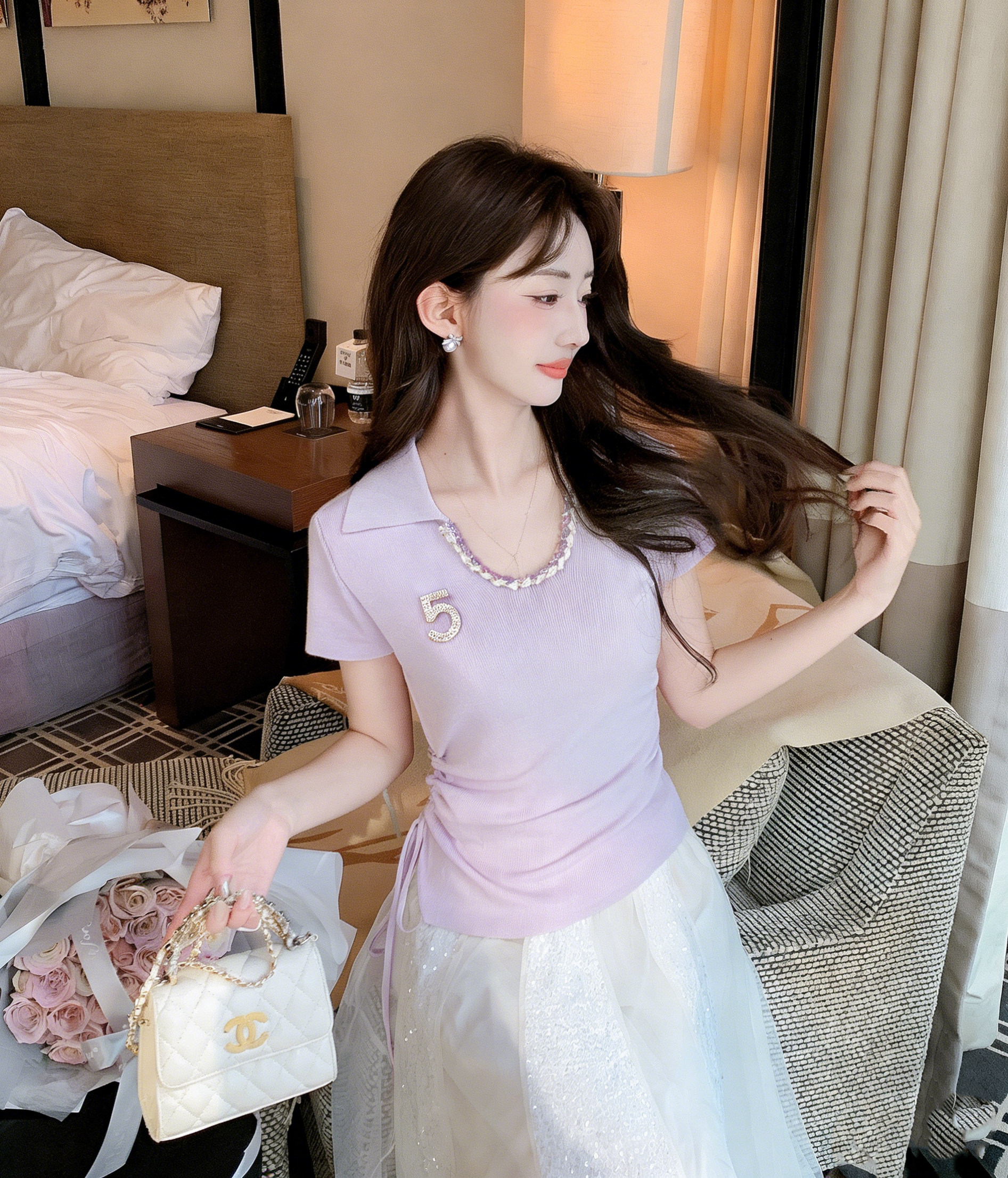 张心子【优雅重现】polo翻领不规则抽绳小香风上衣 U2603001