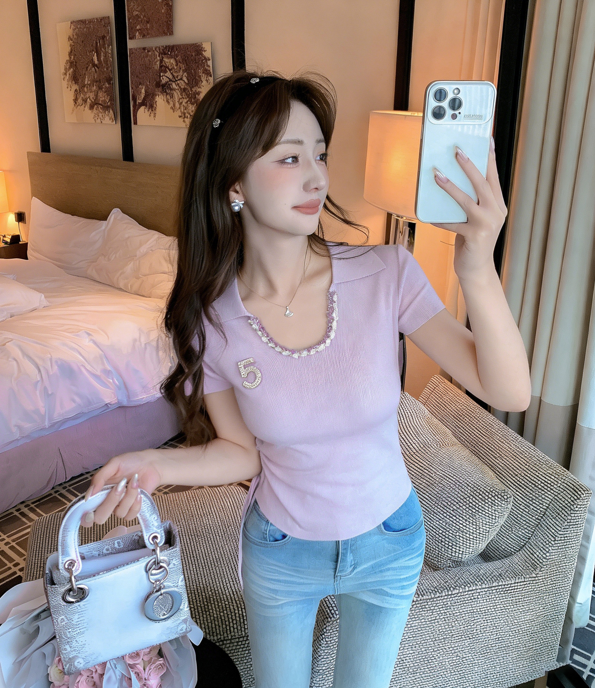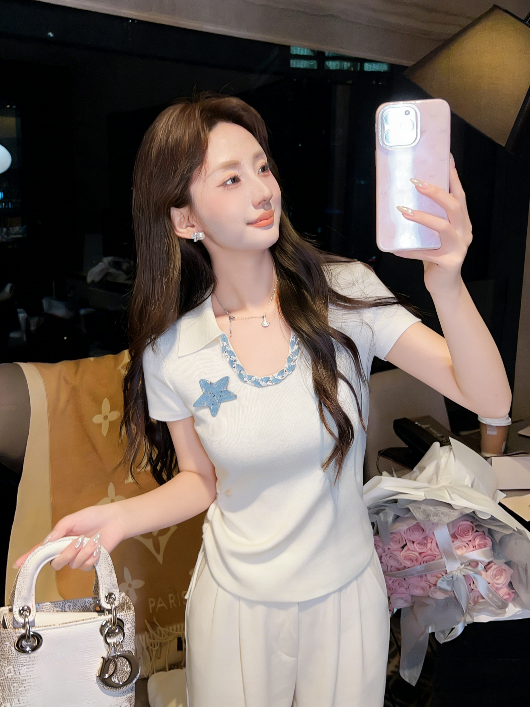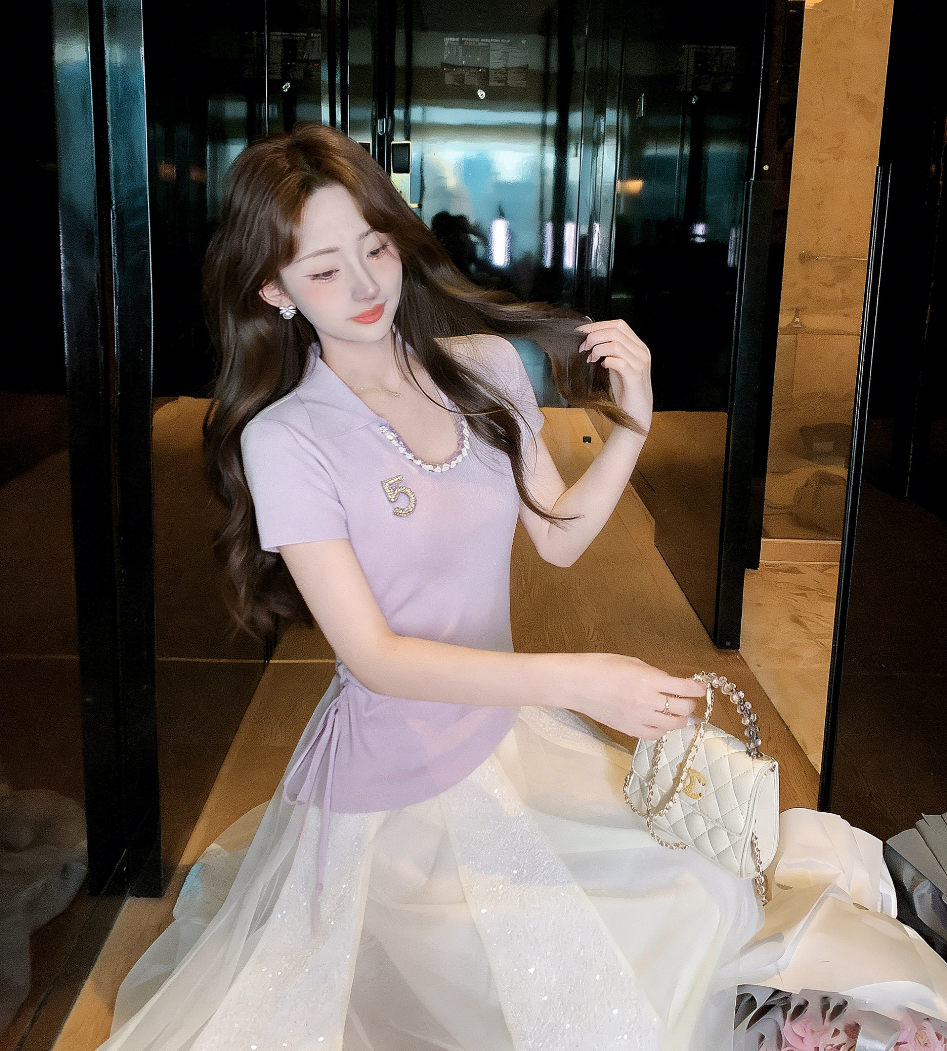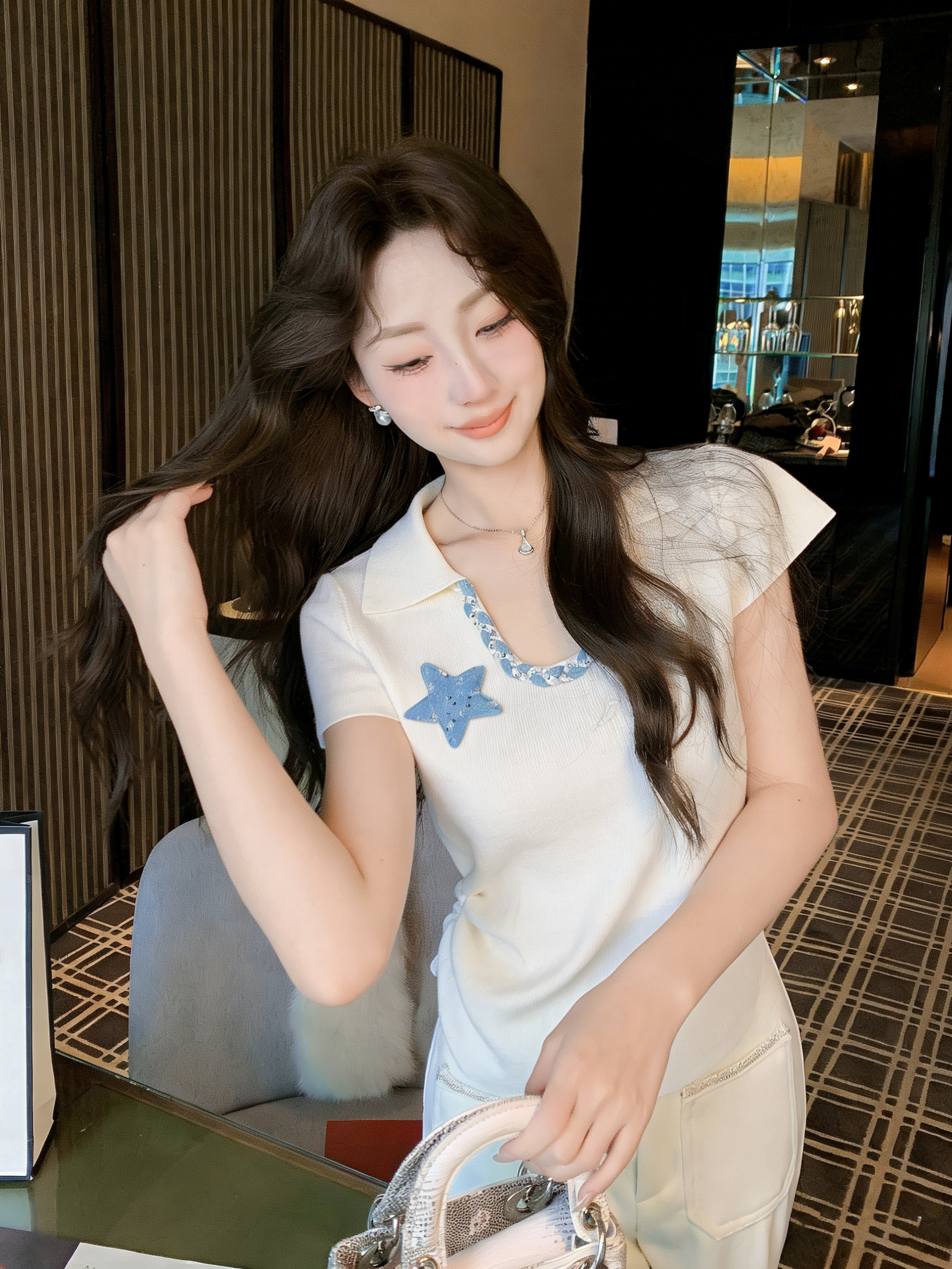 张心子【优雅重现】polo翻领不规则抽绳小香风上衣 U2603001