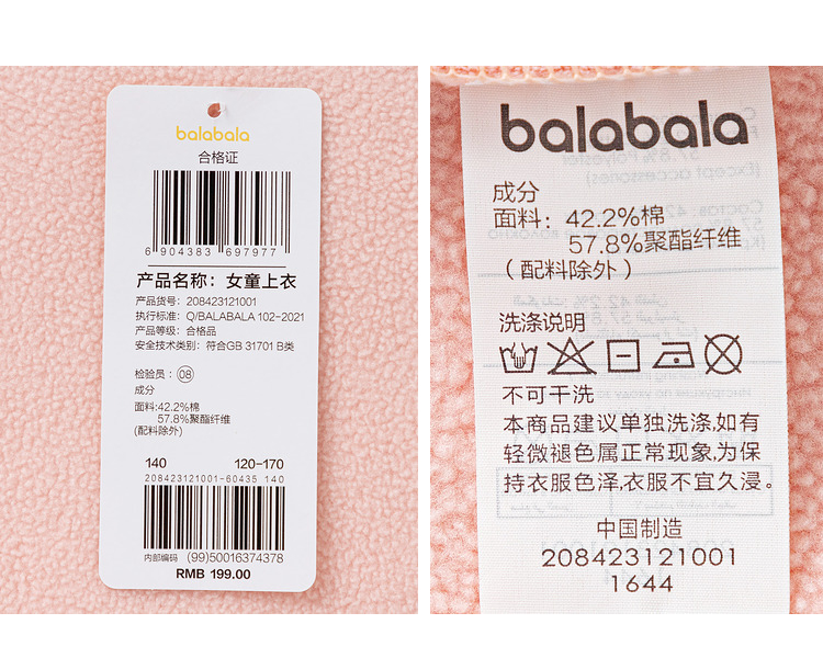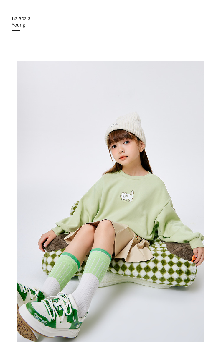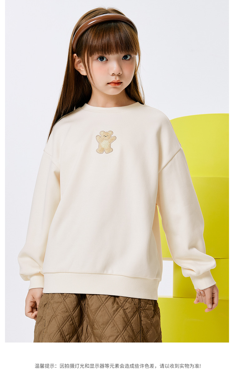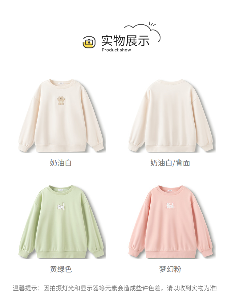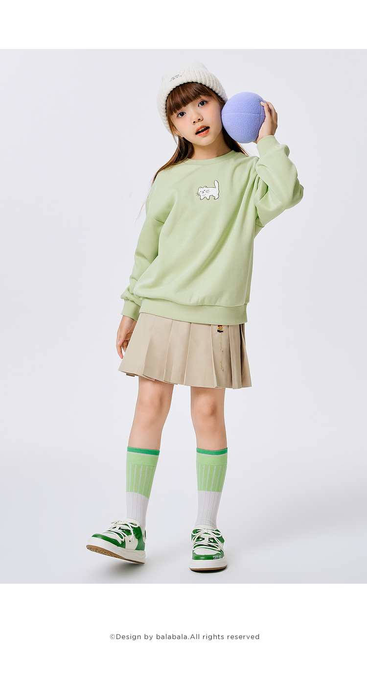 巴拉巴拉女童儿童卫衣加绒保暖秋冬中大童刺绣内搭上衣甜美动物潮