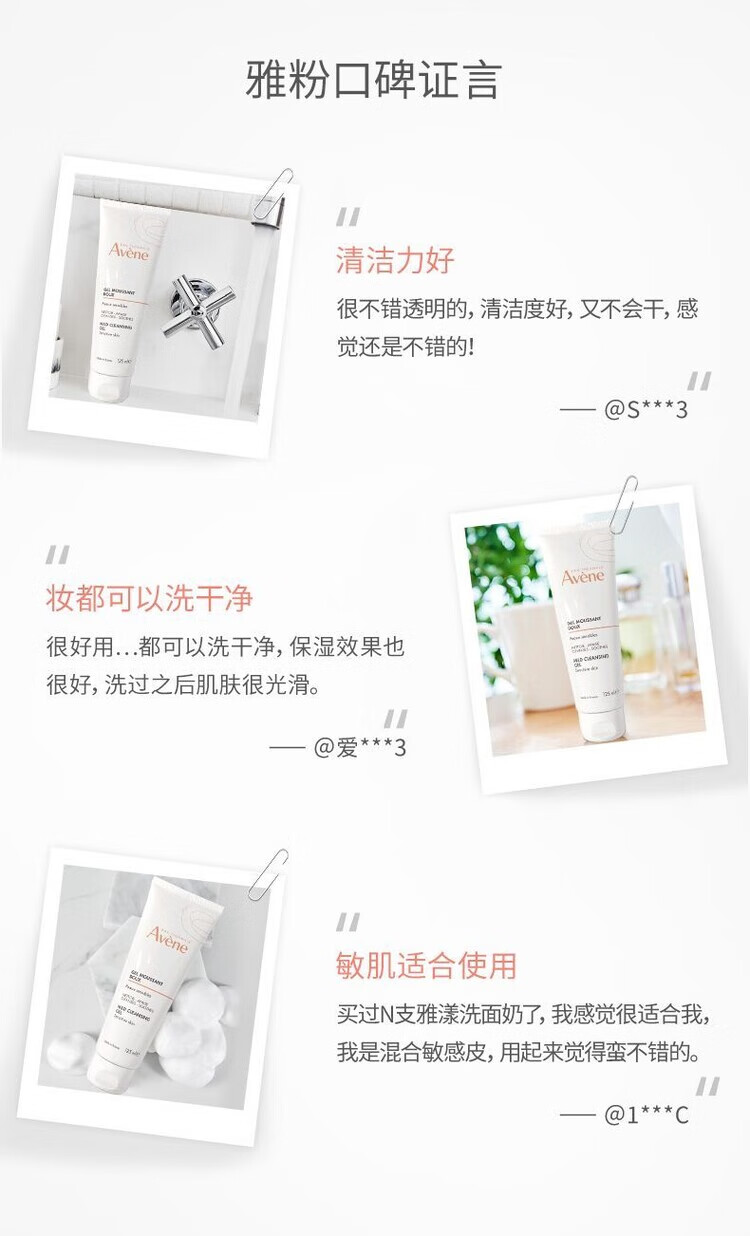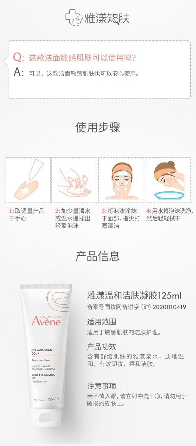 雅漾(Avene)平衡舒润洁肤凝胶无皂基温和洗面奶卸妆啫喱洁面敏感肌 125ml