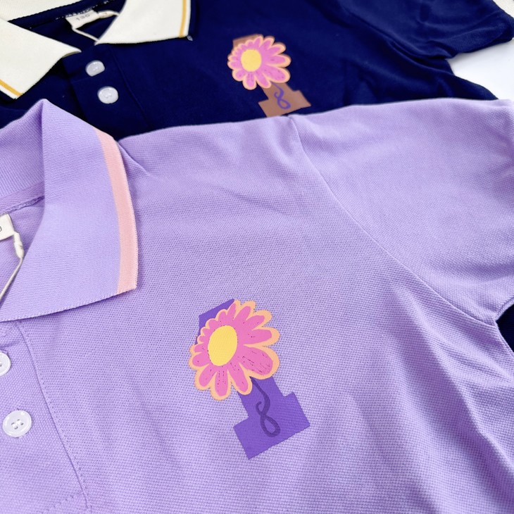 后背的花朵印花做的非常好看!采用高品质胶浆,任意拉扯不开裂~而且花瓣的位置都是做了镂空的设计~