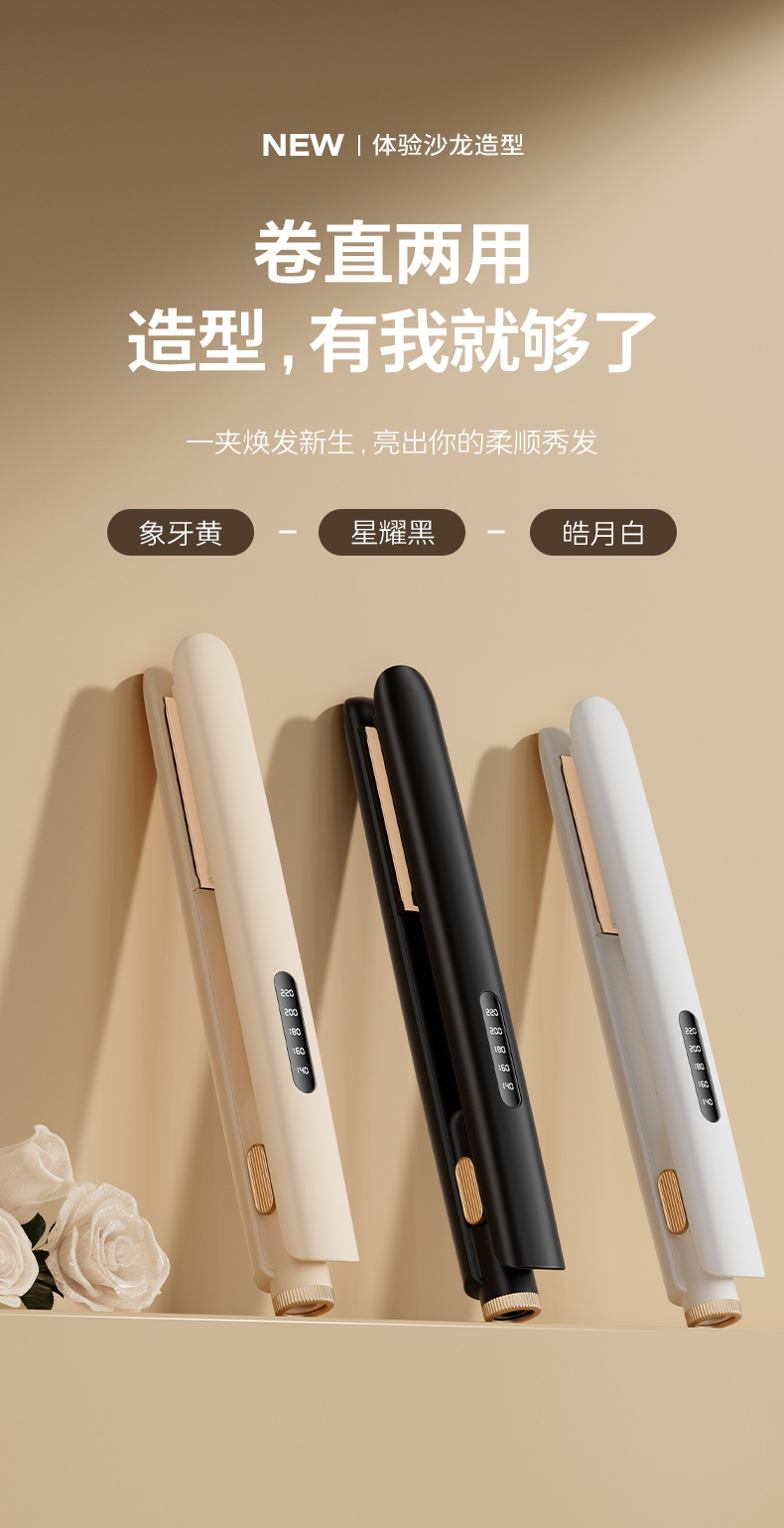 【卷直两用!造型 有我就够了】新款卷发棒液晶屏直发夹多档调温直发器数显学生宿舍卷直两用发夹板拉直器电卷棒。ry