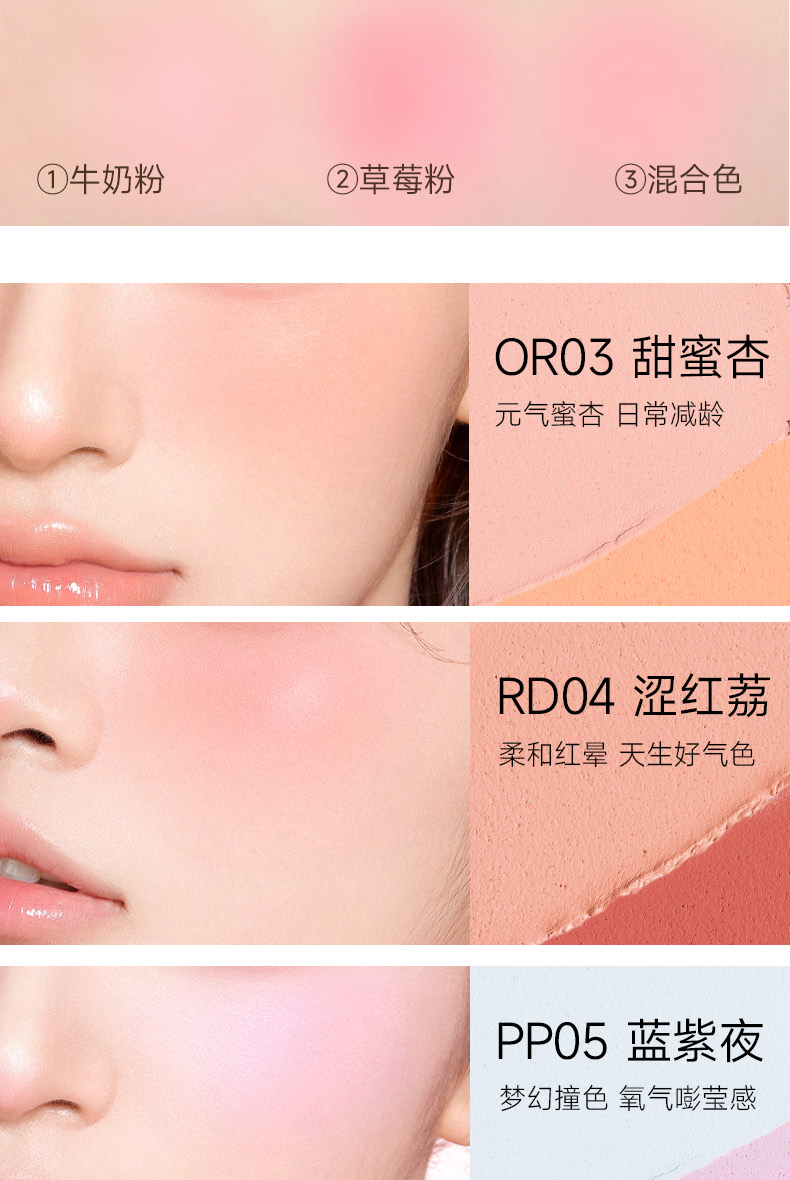 菲鹿儿双色腮红泥自然胭脂持久裸妆显白脸部提亮腮紫蓝新手盘粉扑一体