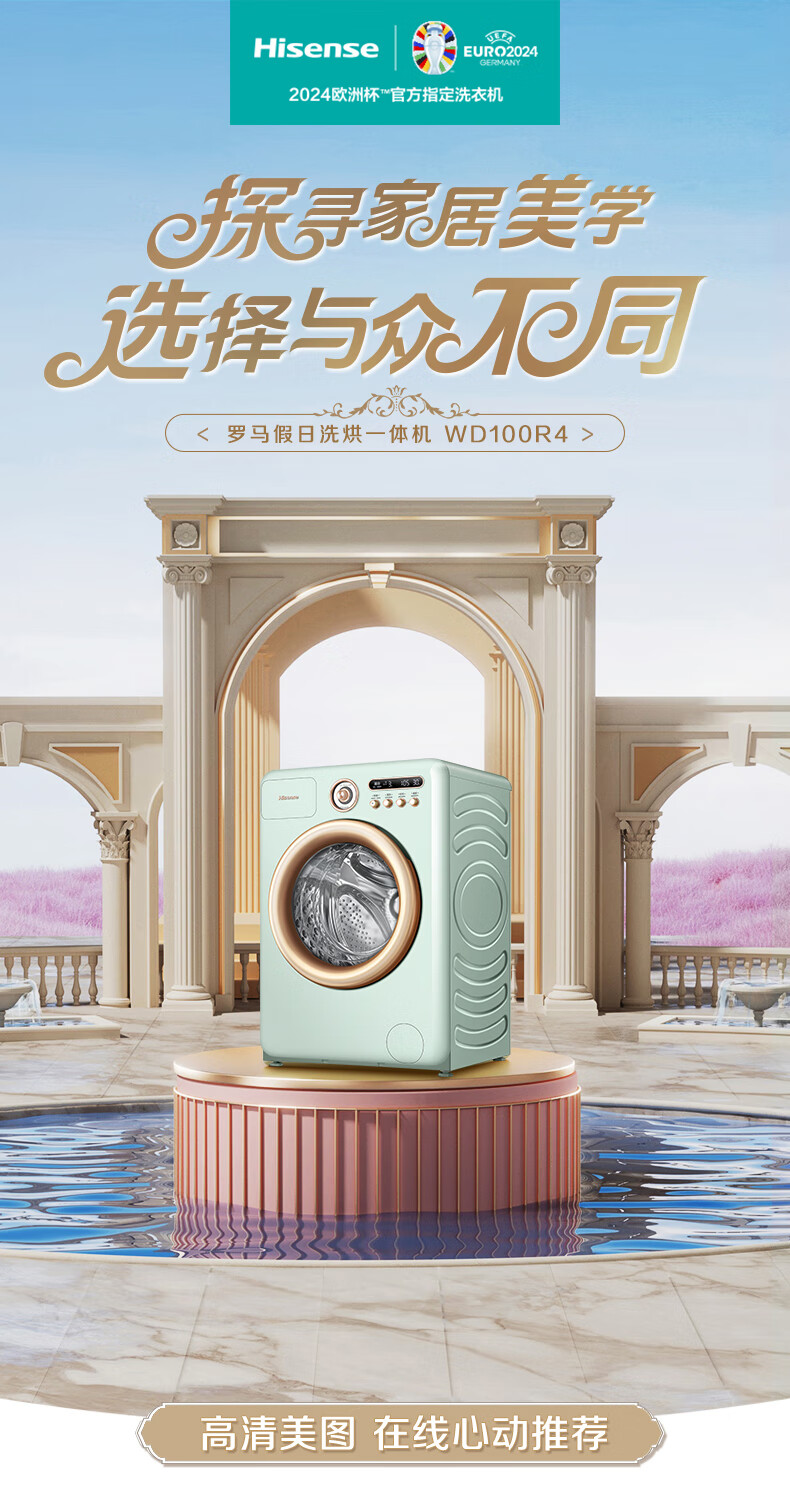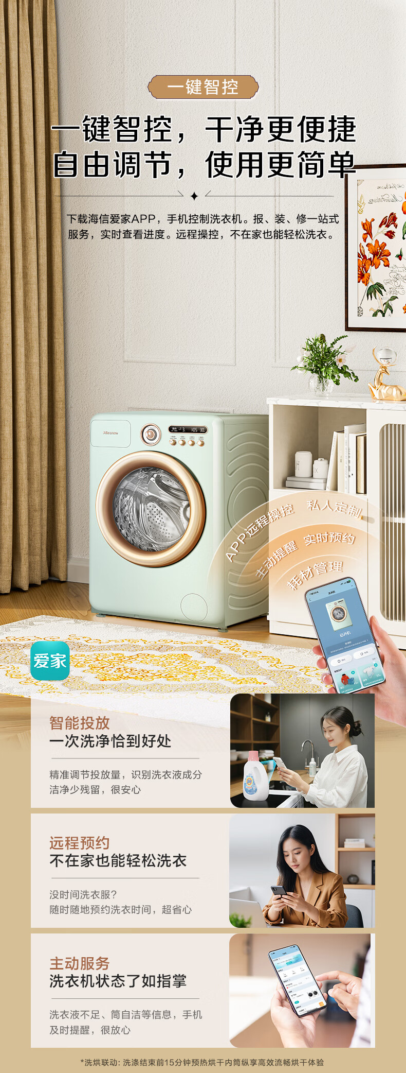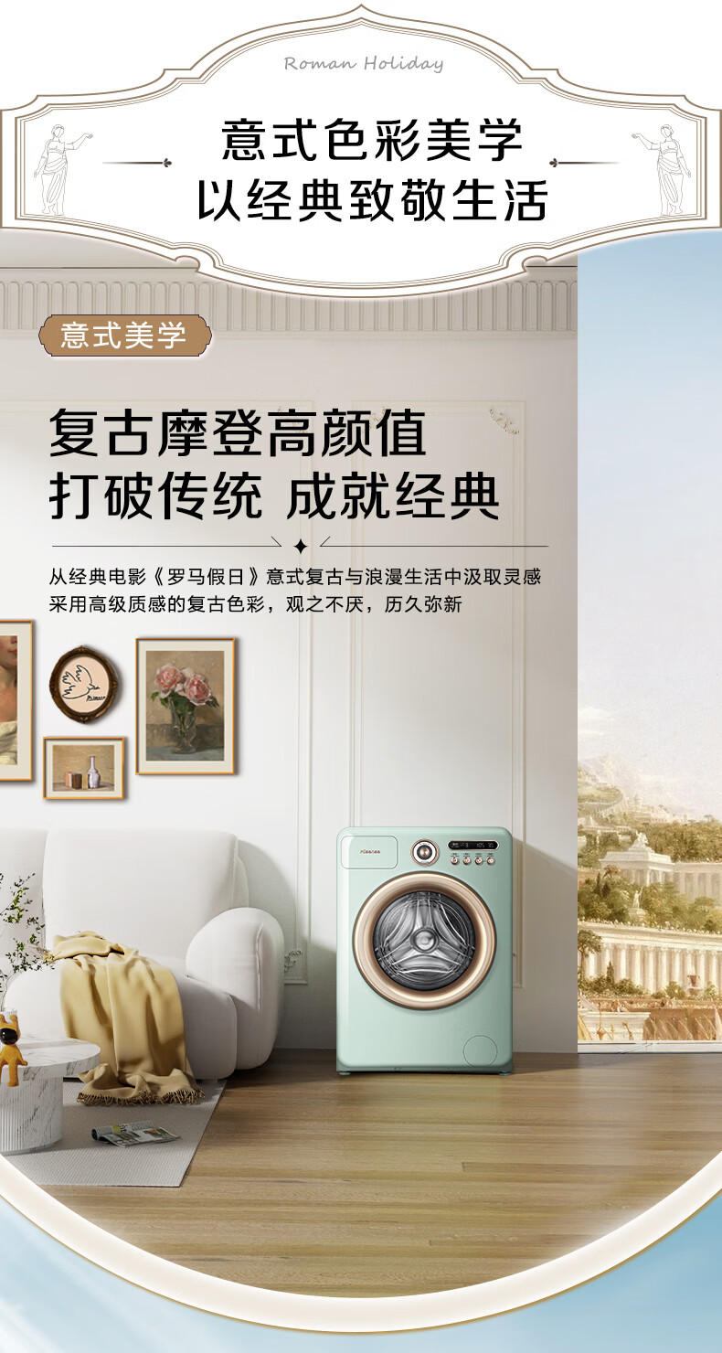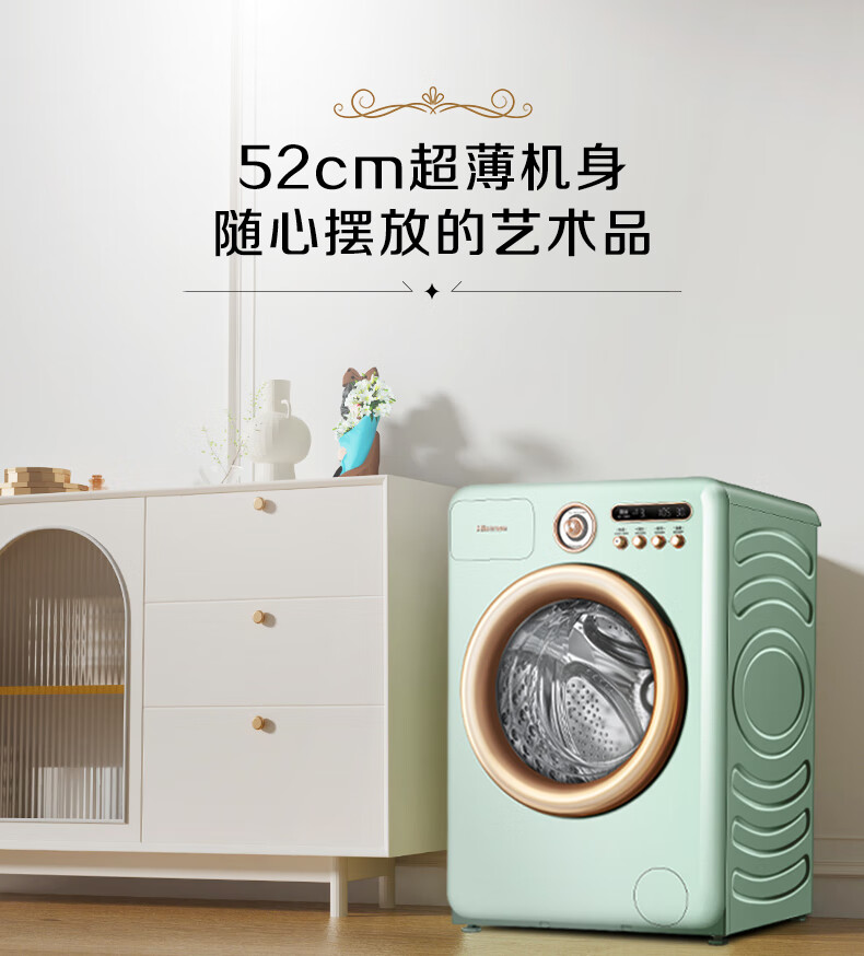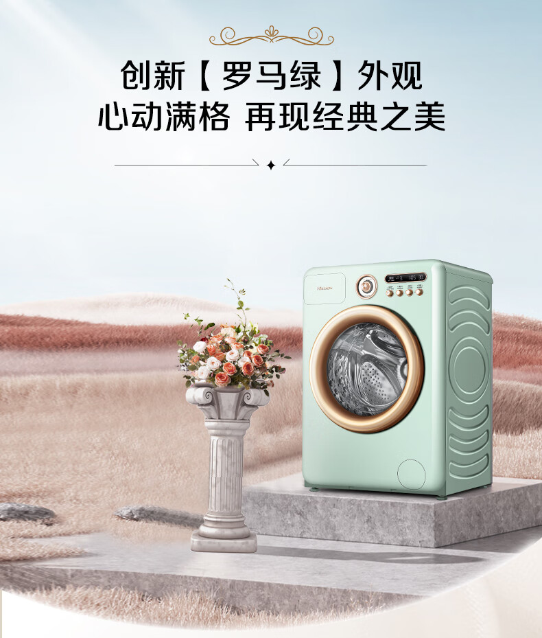 海信罗马假日洗衣机罗马绿 全自动滚筒洗衣机10公斤家用大容量洗烘一体超薄活水洗WD100R4