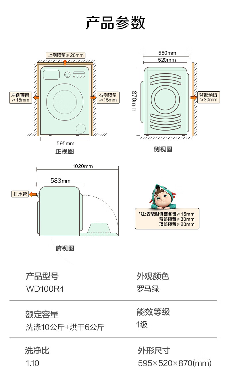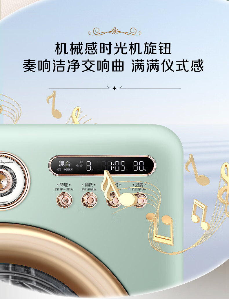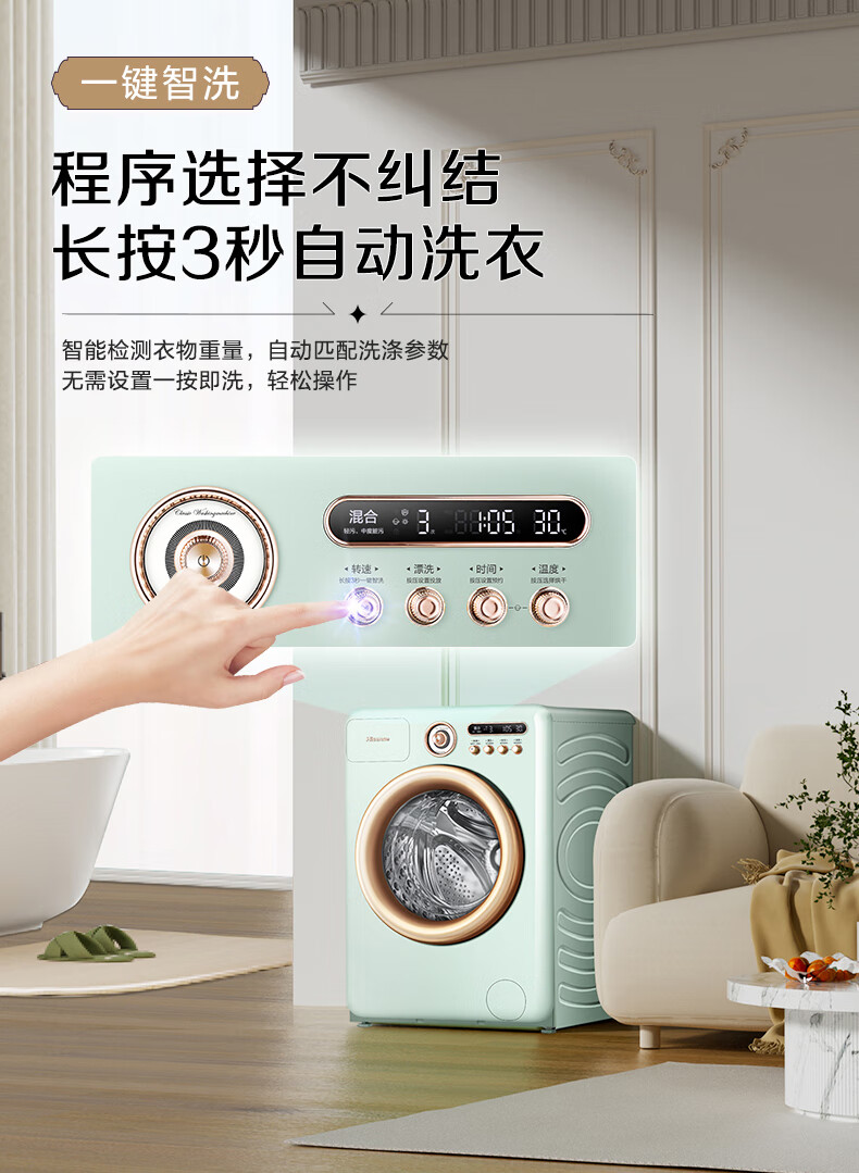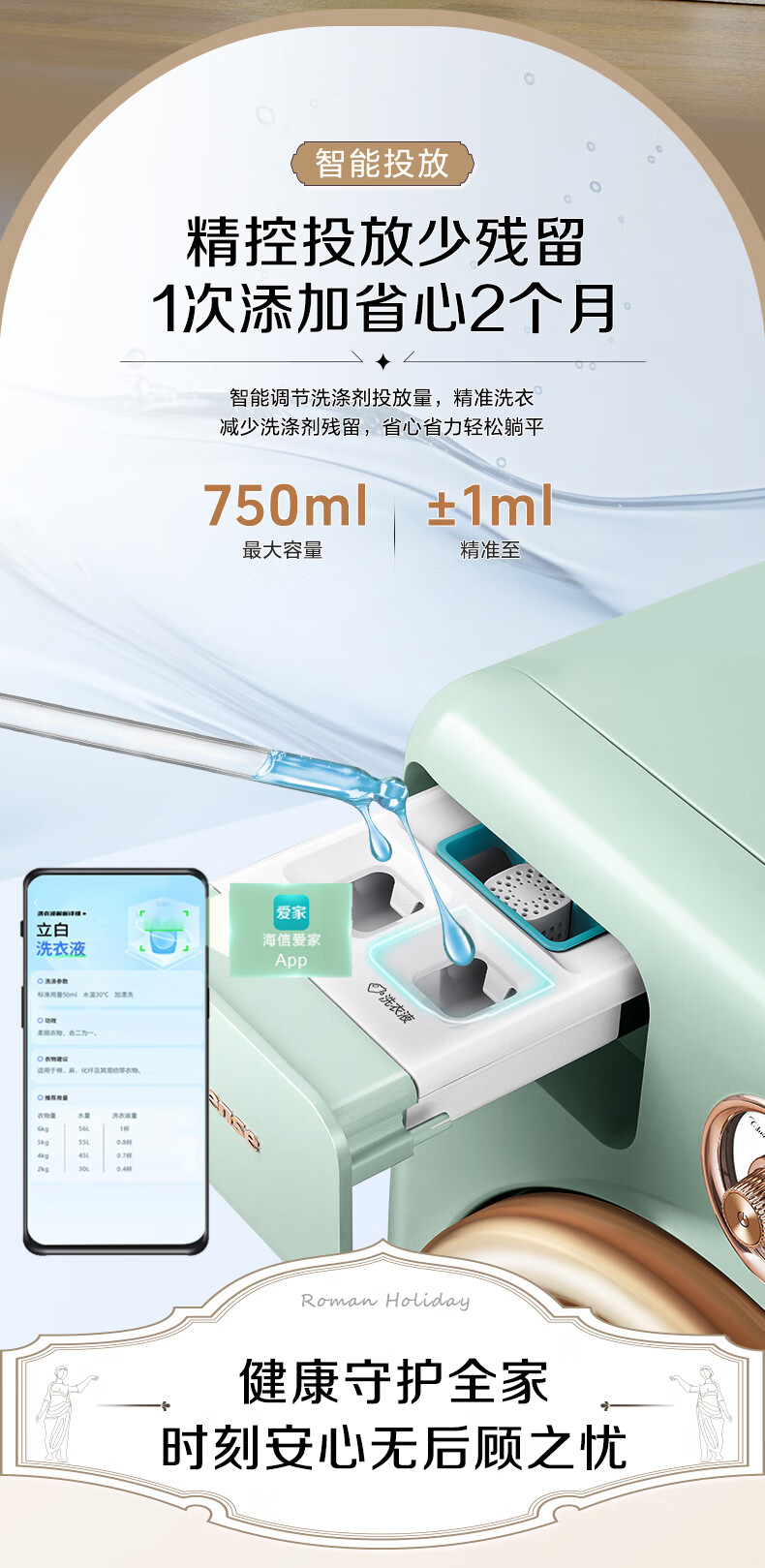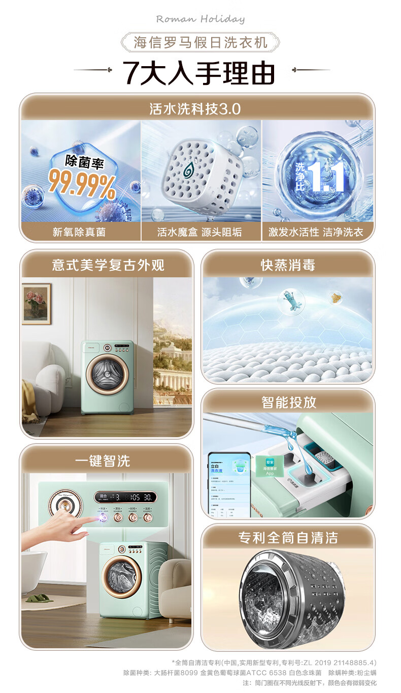 海信罗马假日洗衣机罗马绿 全自动滚筒洗衣机10公斤家用大容量洗烘一体超薄活水洗WD100R4