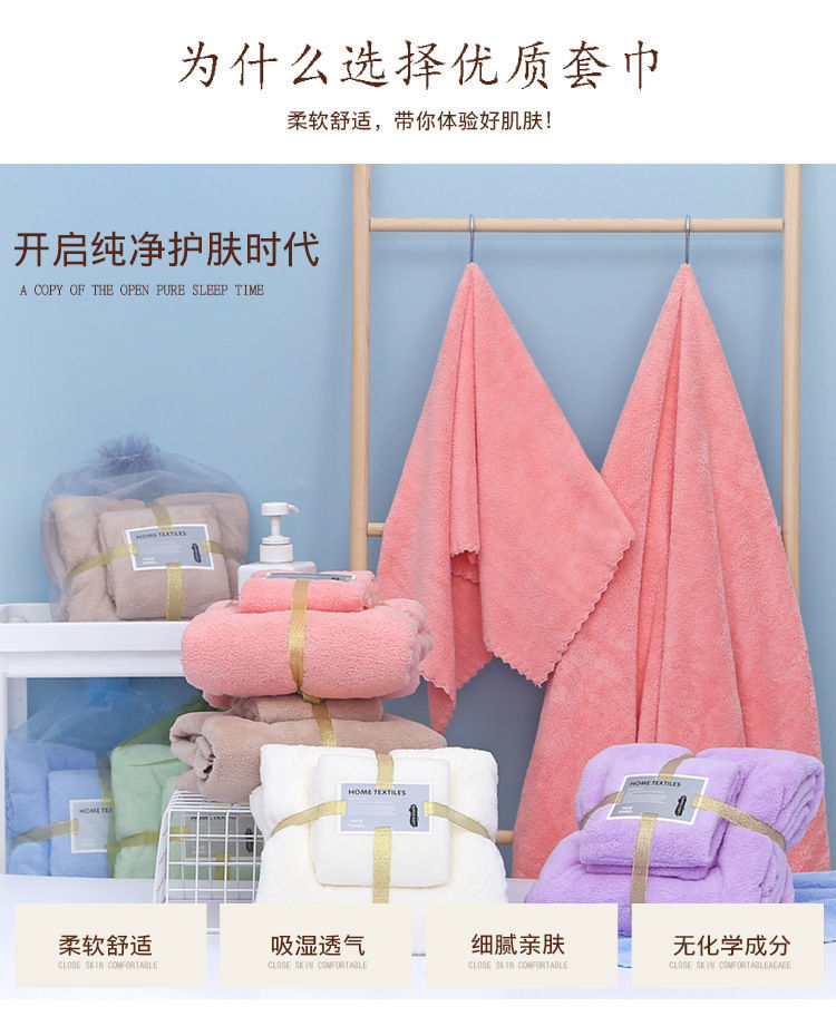 【无印良品弱爆了!珊瑚绒浴巾+毛巾套装】吸水能力堪比纸尿裤,柔软亲肤,享受云朵端的包裹,加大毛巾浴巾套装,柔韧耐用!