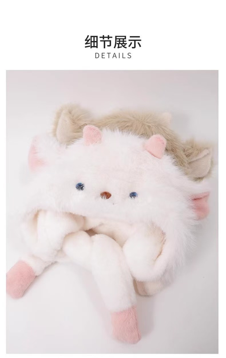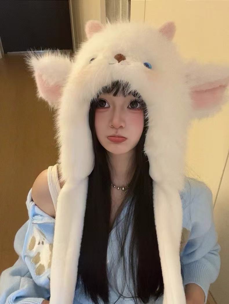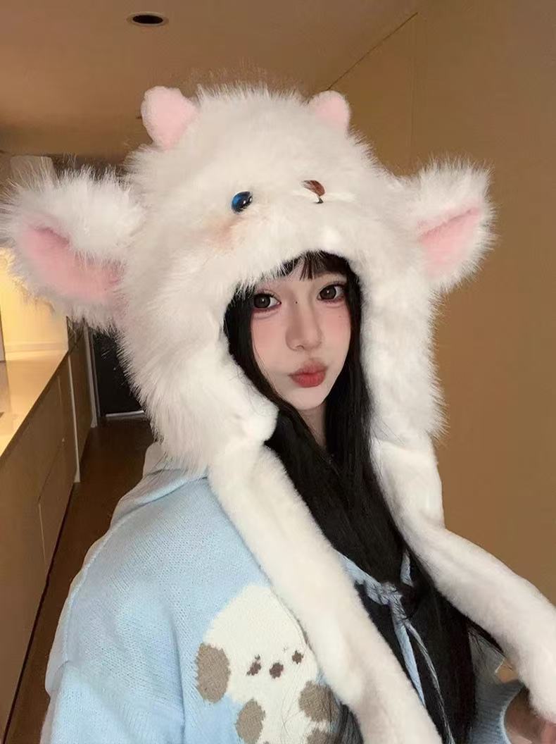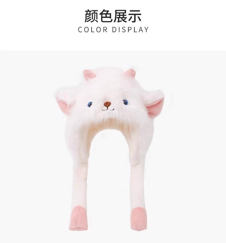 【甄选加厚好材质❗️秋冬必备时尚单品】可爱卡通耳朵会动小羊加厚保暖毛绒帽子女冬季防寒护耳网红雷锋帽。ja