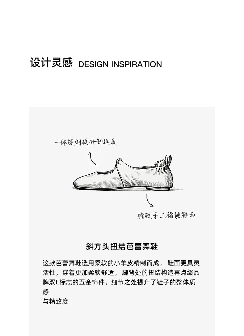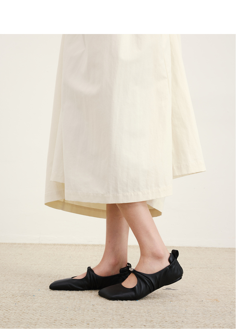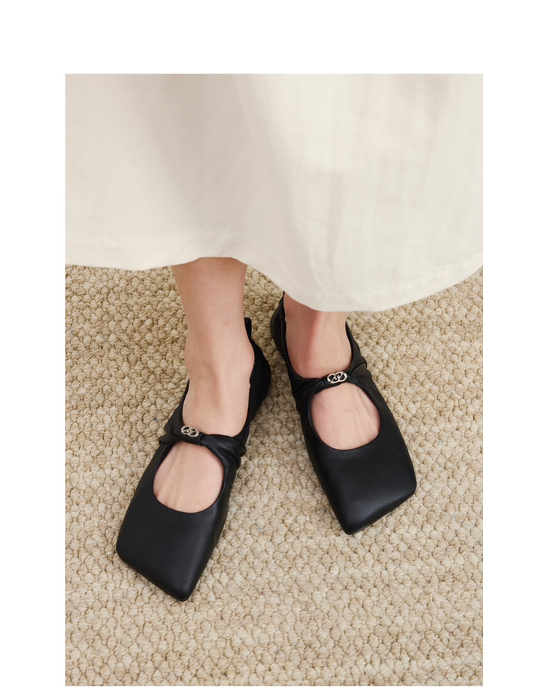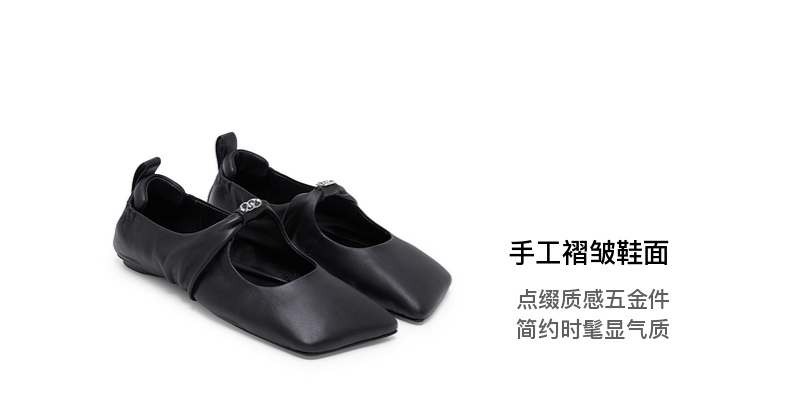 lost in echo2026春夏新款精致手工褶皱羊皮斜方头扭结芭蕾舞鞋女