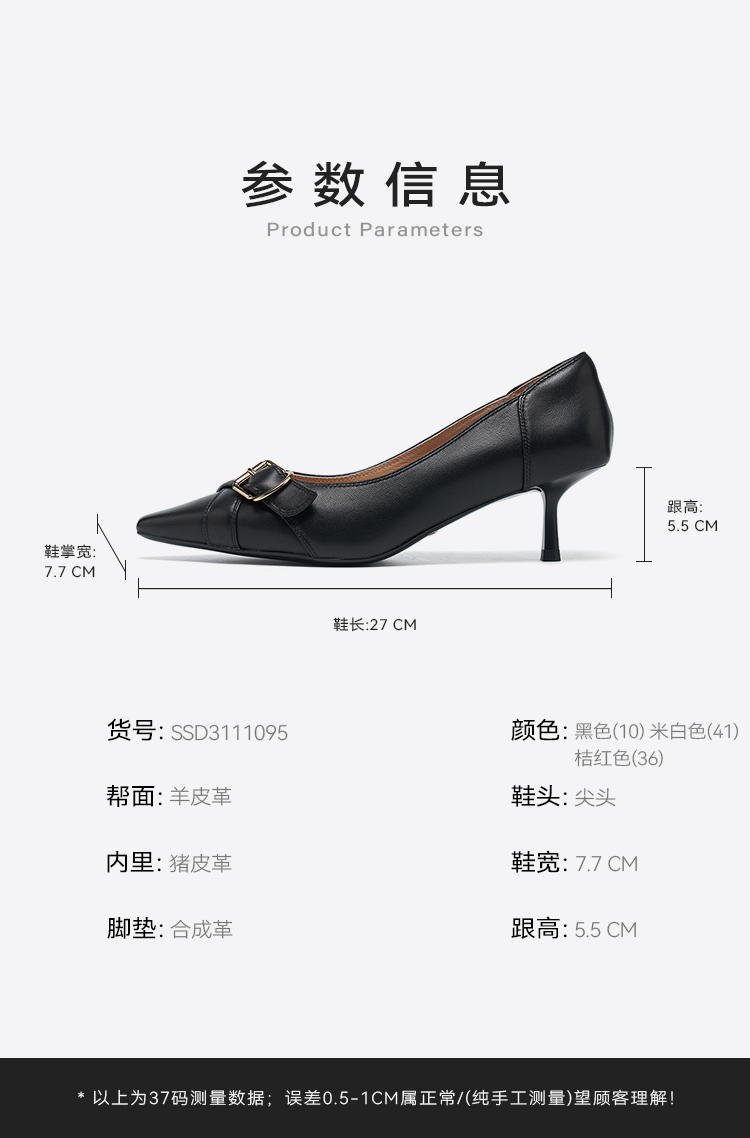 【职场必备】星期六金属方扣尖头细高跟SSD3111095