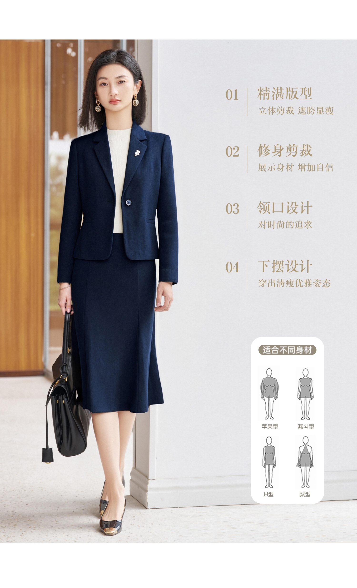 米思阳2026春季新款高级感职业OL通勤修身百搭西装外套+高腰鱼尾半身裙女5496