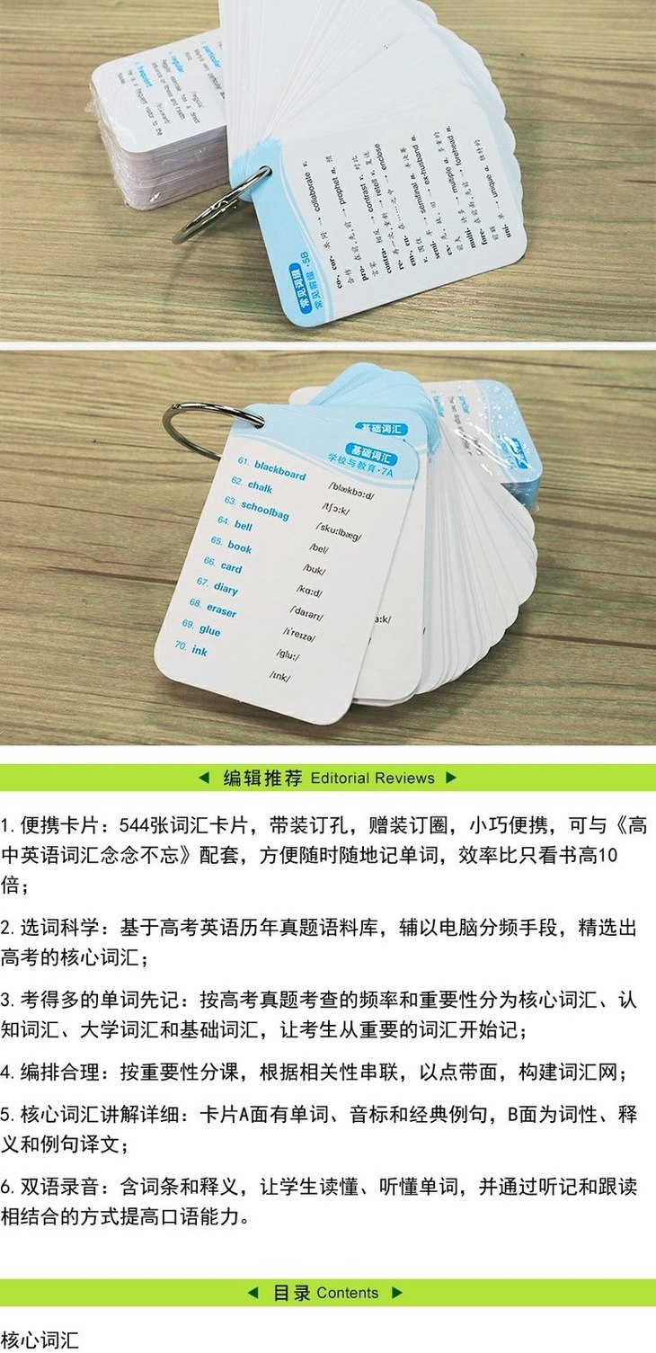 高中英语词汇卡片 3500高考大纲词汇 乱序分频 544张便携卡片 赠装订圈 配套音频