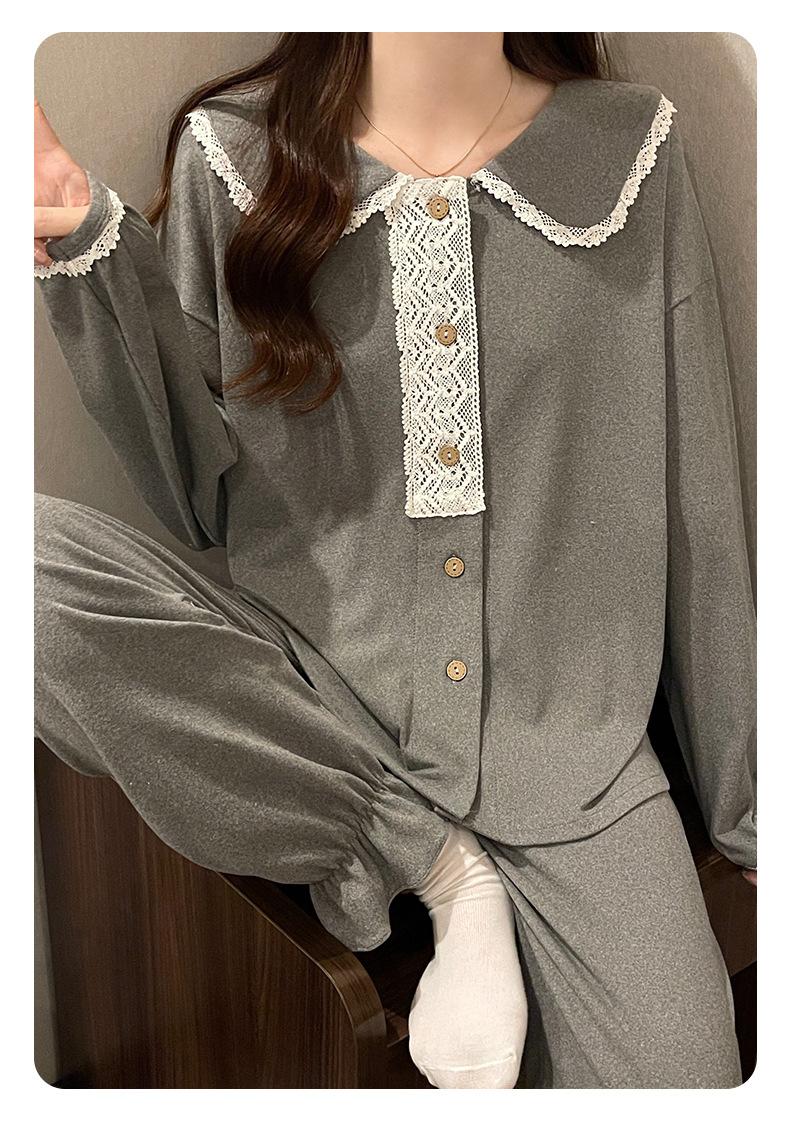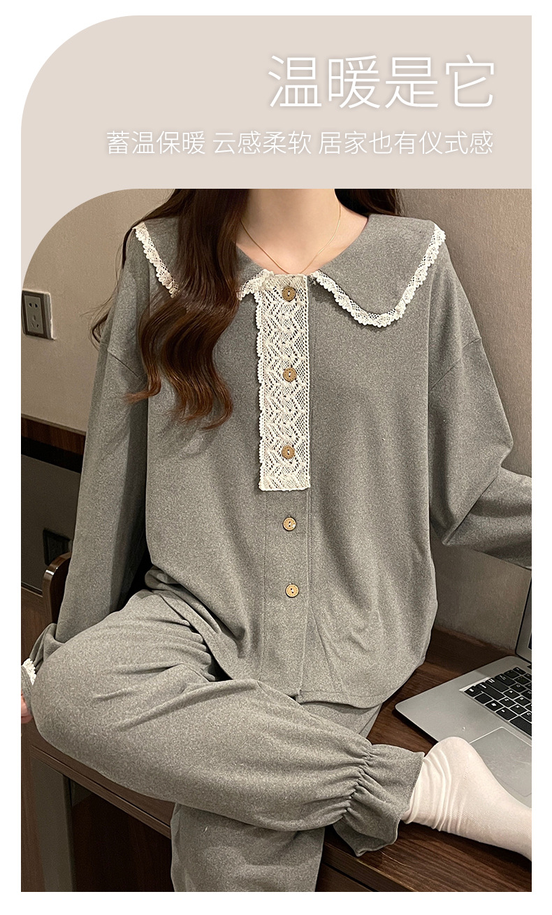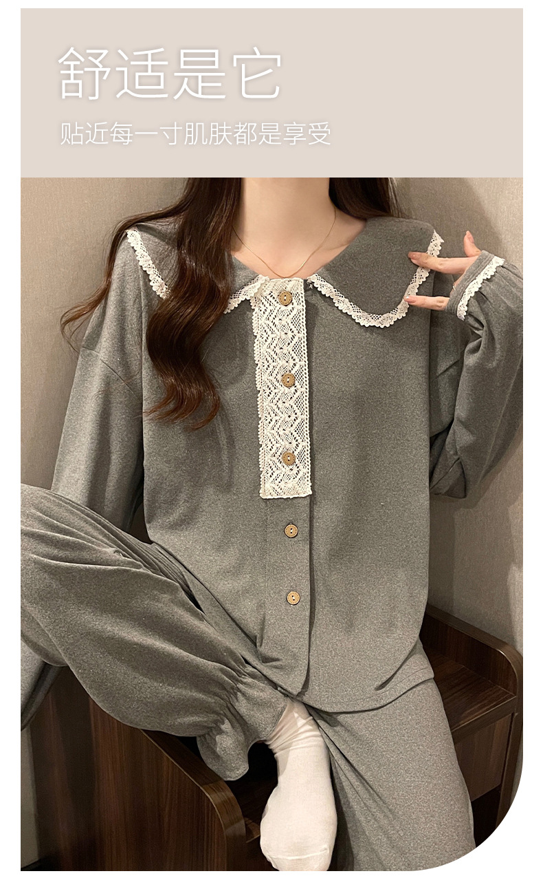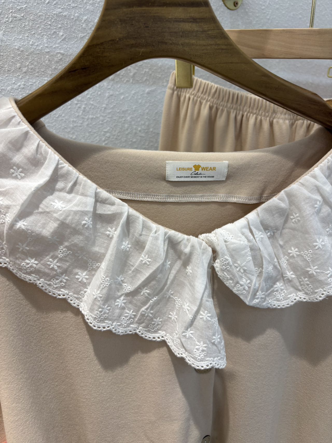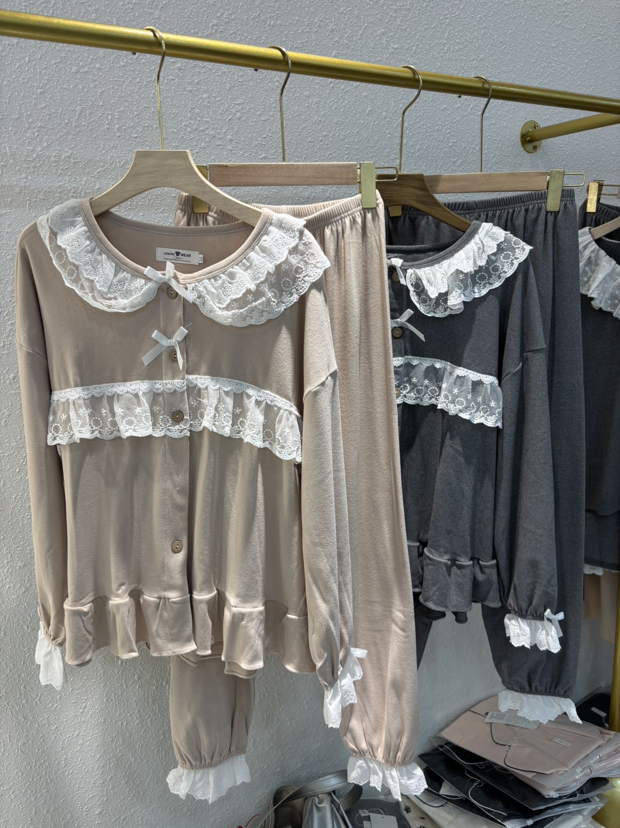 【YW】无忧购“”蕾丝花边开衫家居服睡衣两件套(截单后3-5天发货)