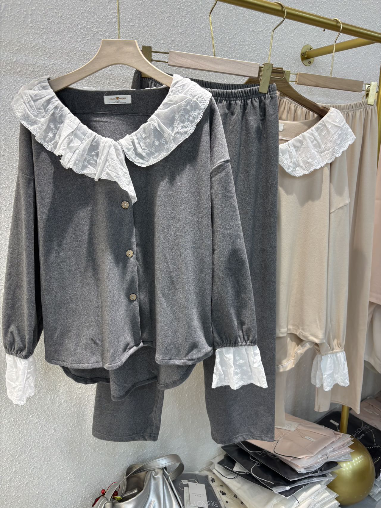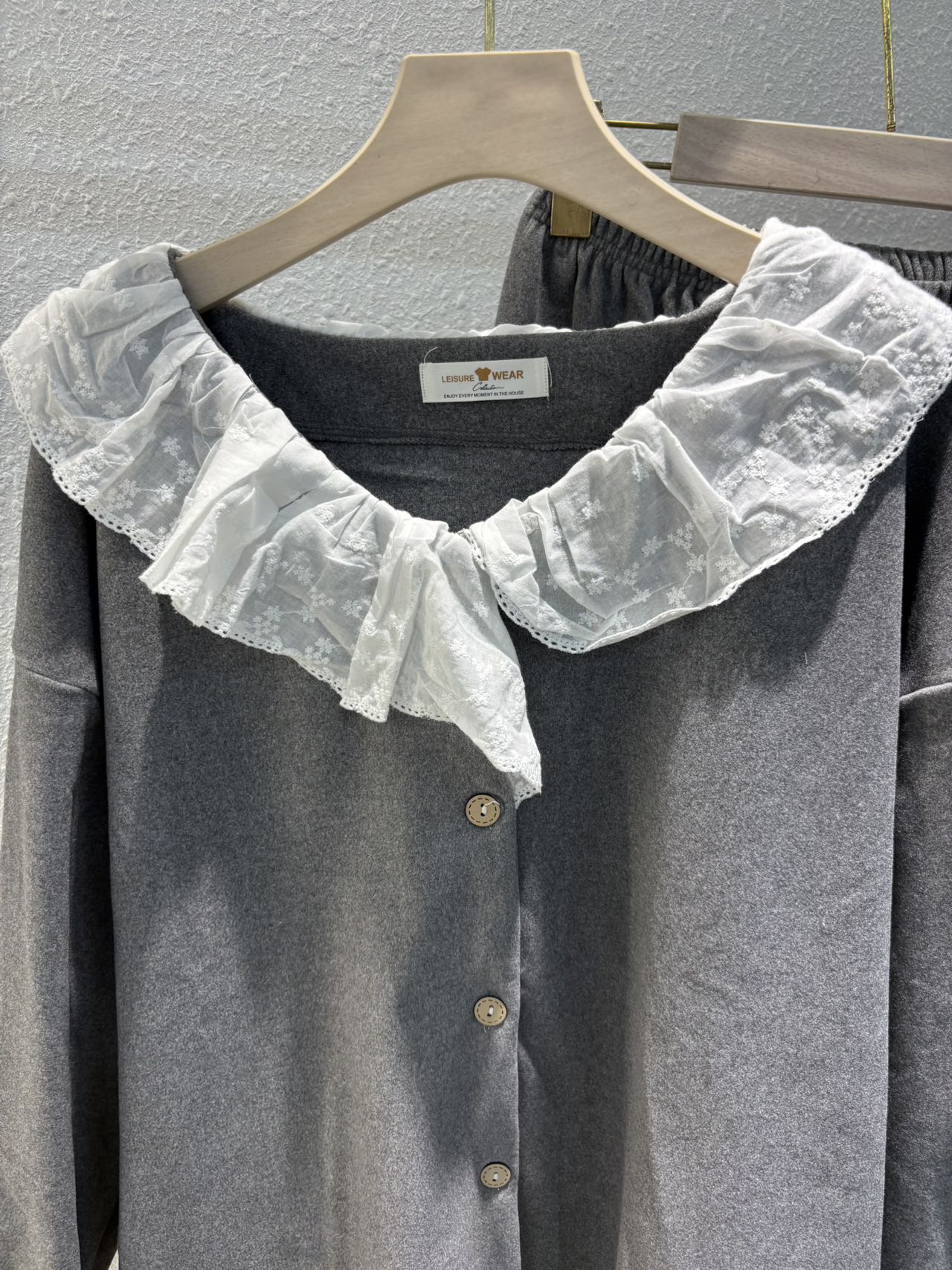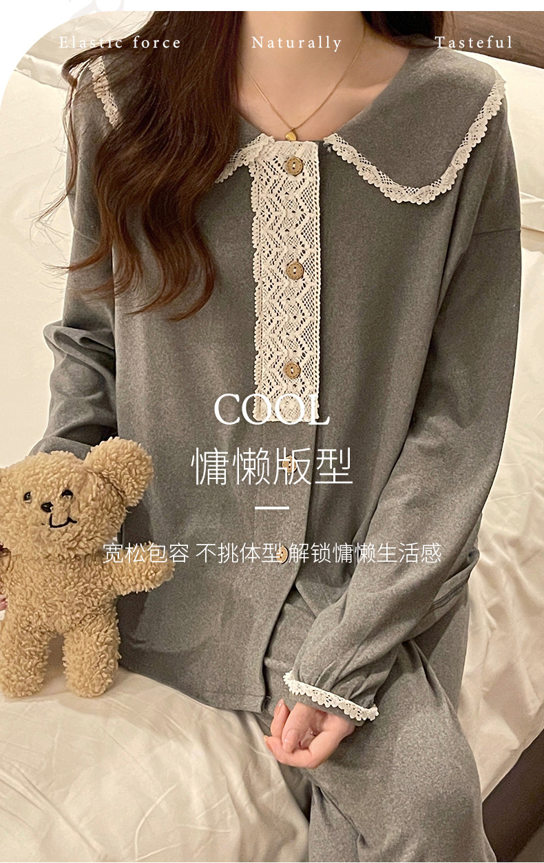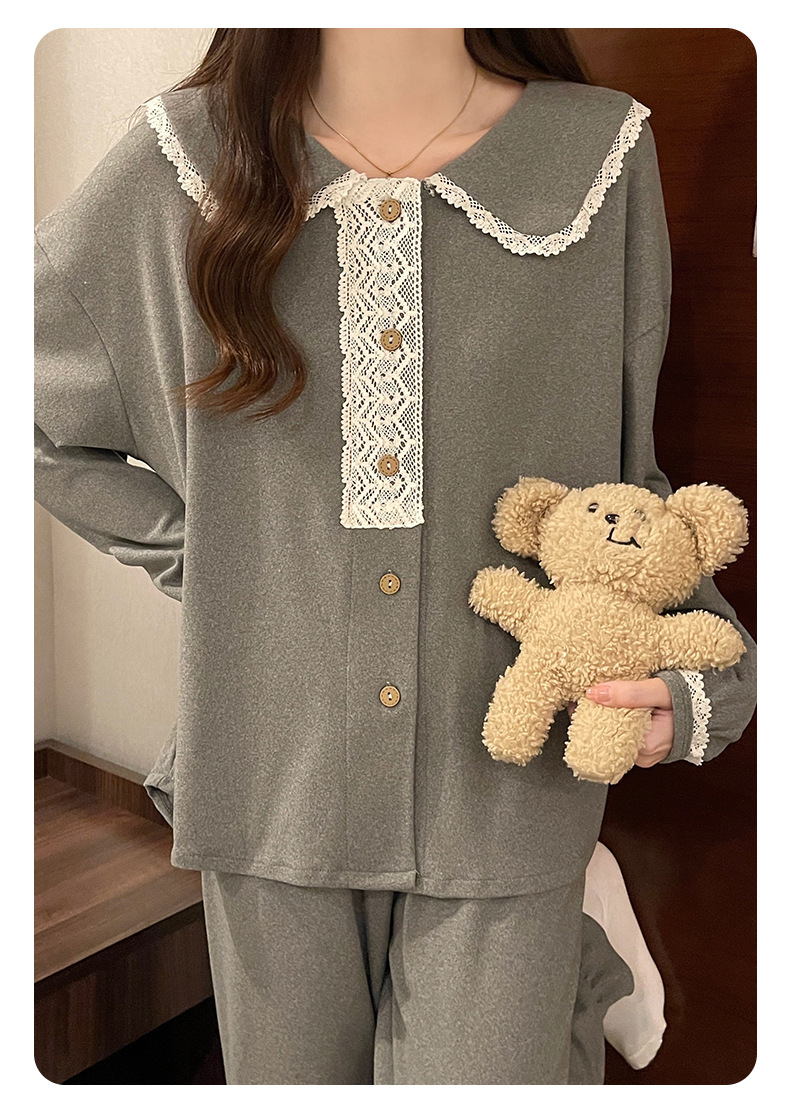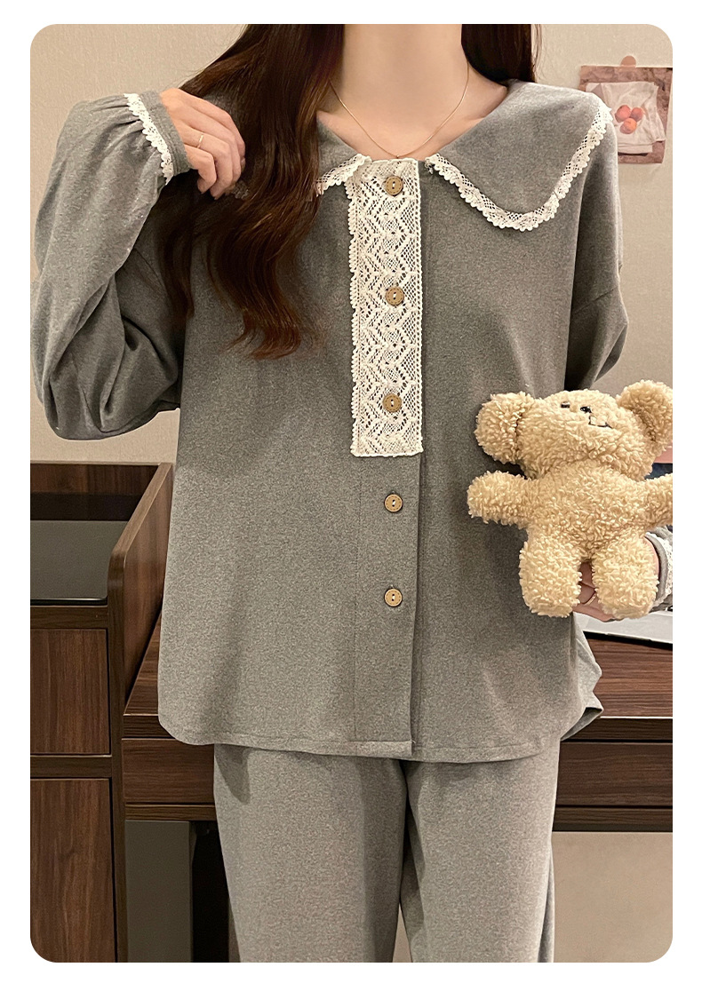 【YW】无忧购“”蕾丝花边开衫家居服睡衣两件套(截单后3-5天发货)