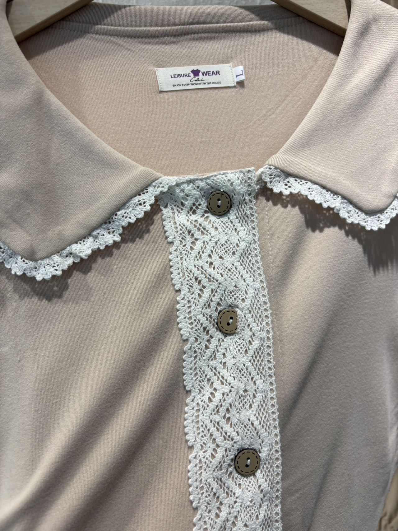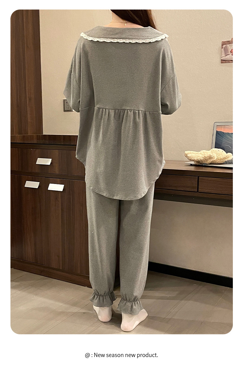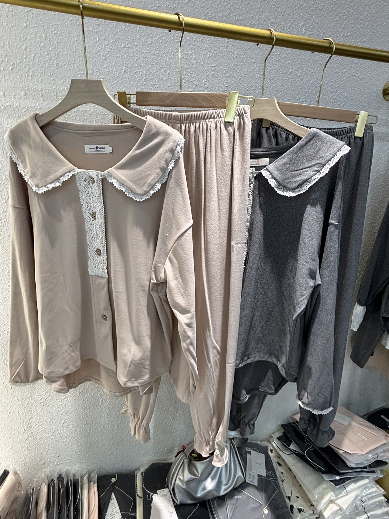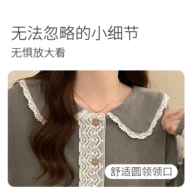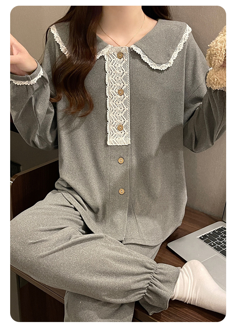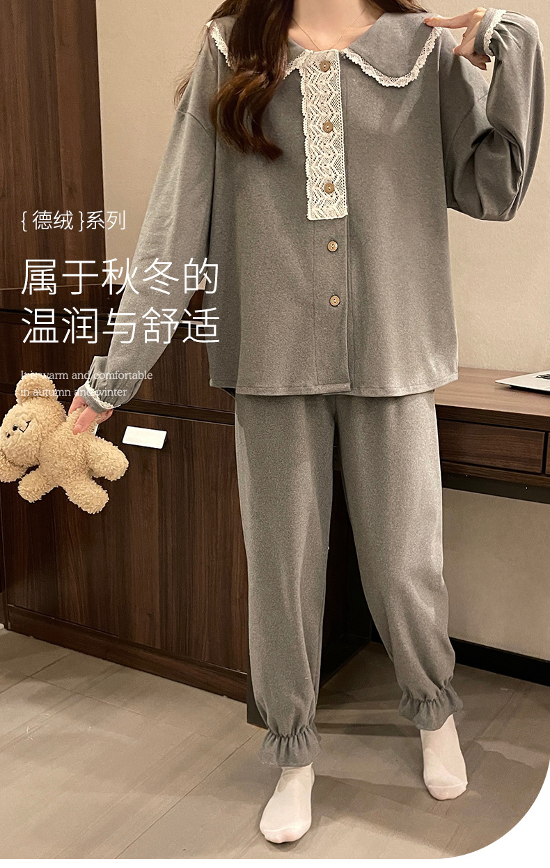 【YW】无忧购“”蕾丝花边开衫家居服睡衣两件套(截单后3-5天发货)