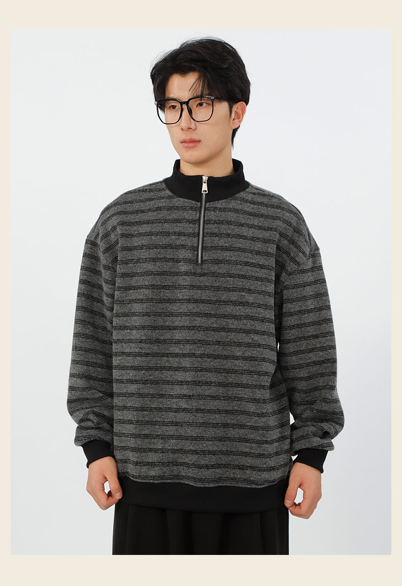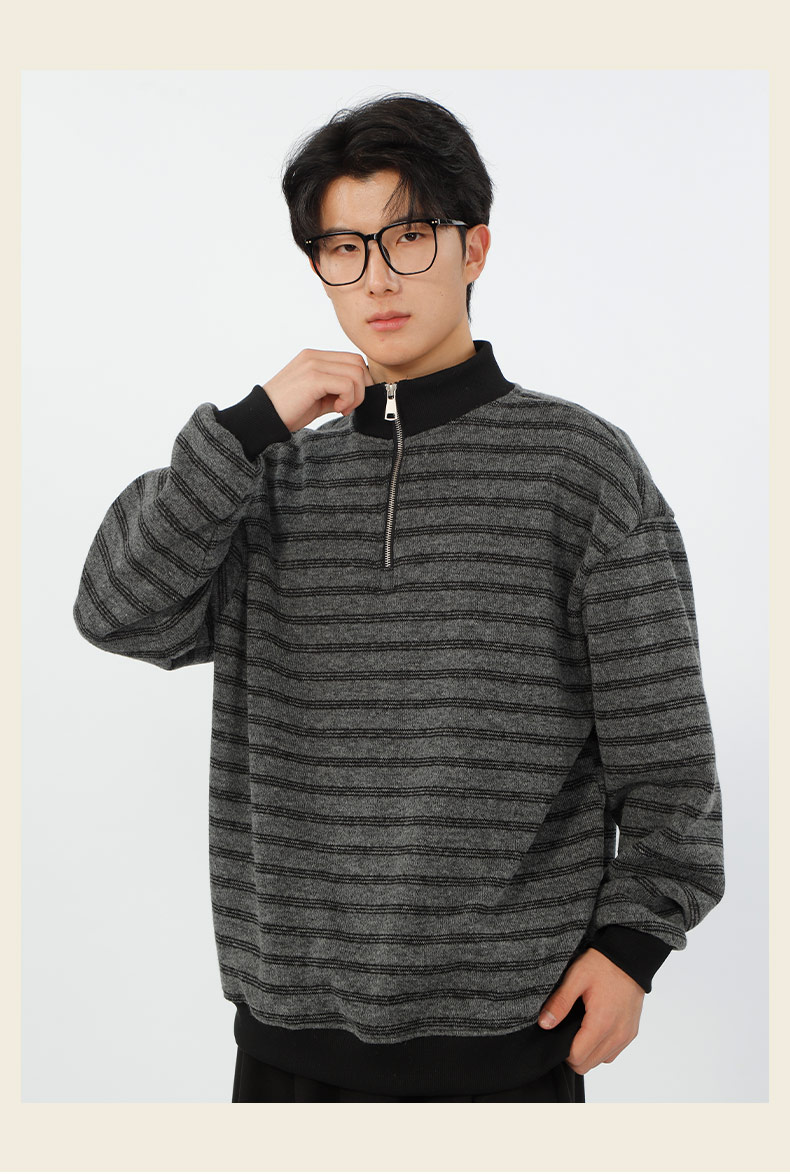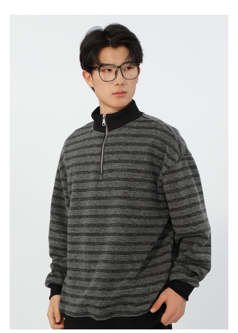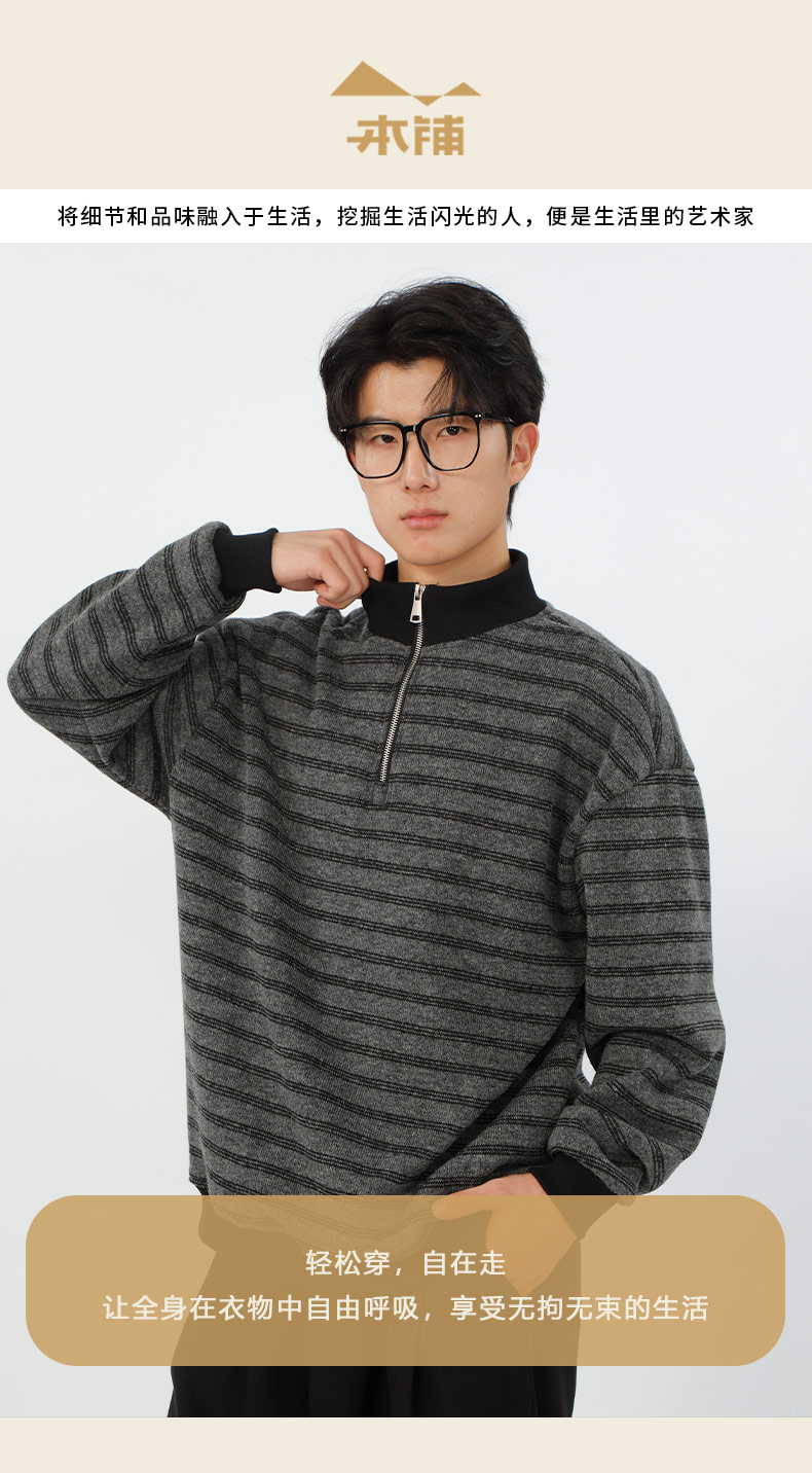 宽松加绒polo领条纹套头针织衫-纪念日百货门店同款167749435