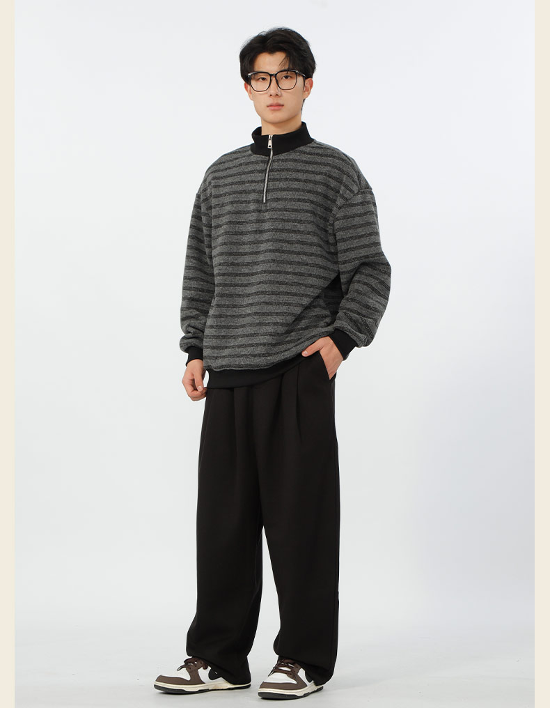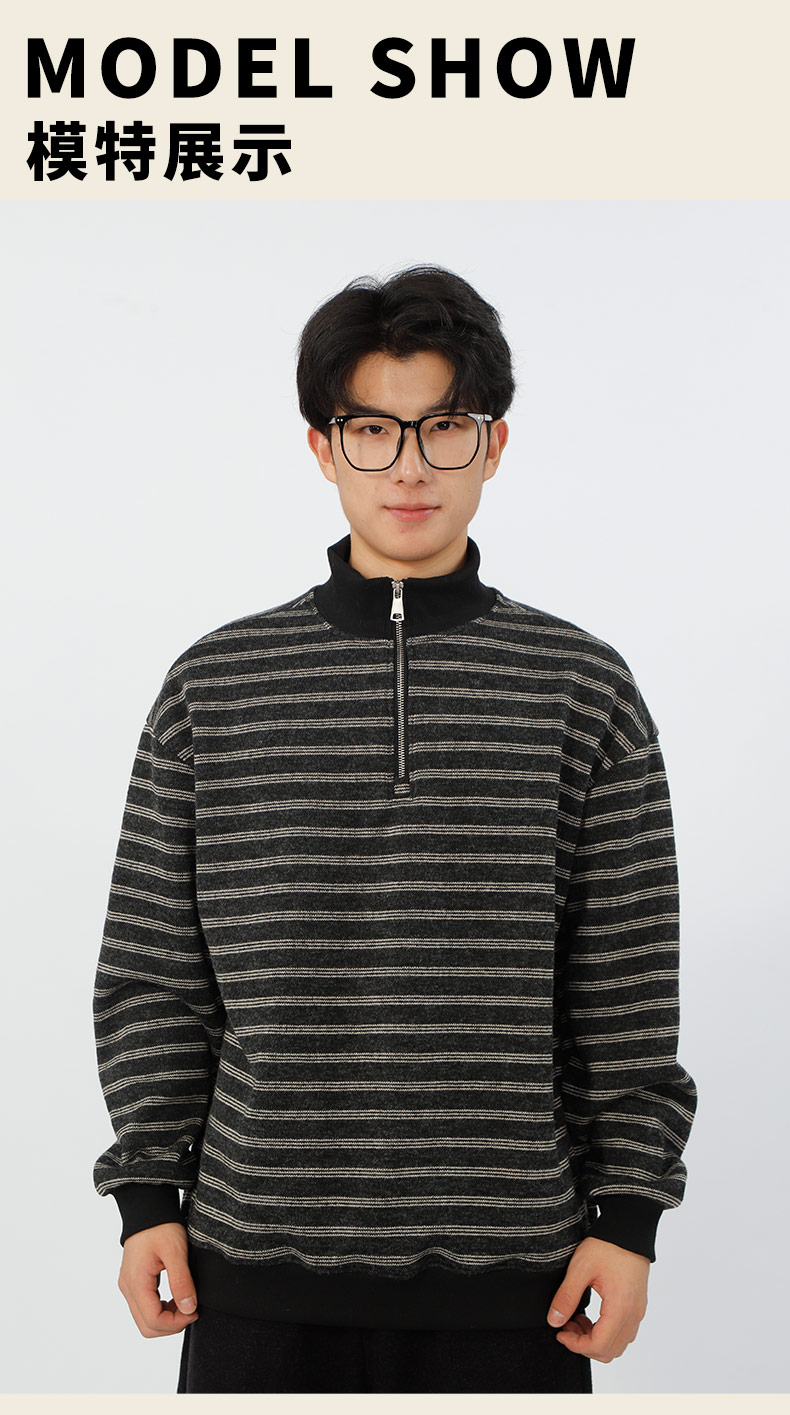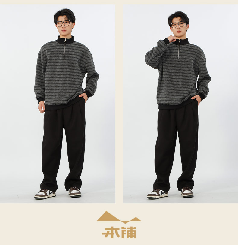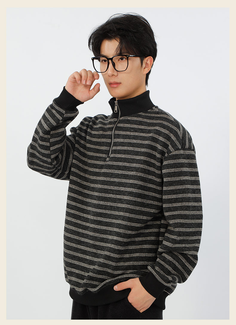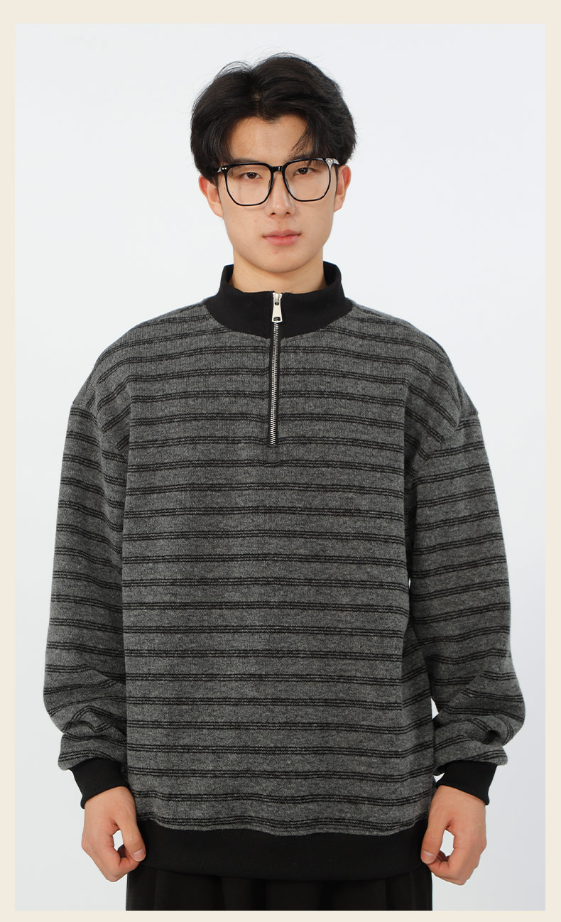 宽松加绒polo领条纹套头针织衫-纪念日百货门店同款167749435