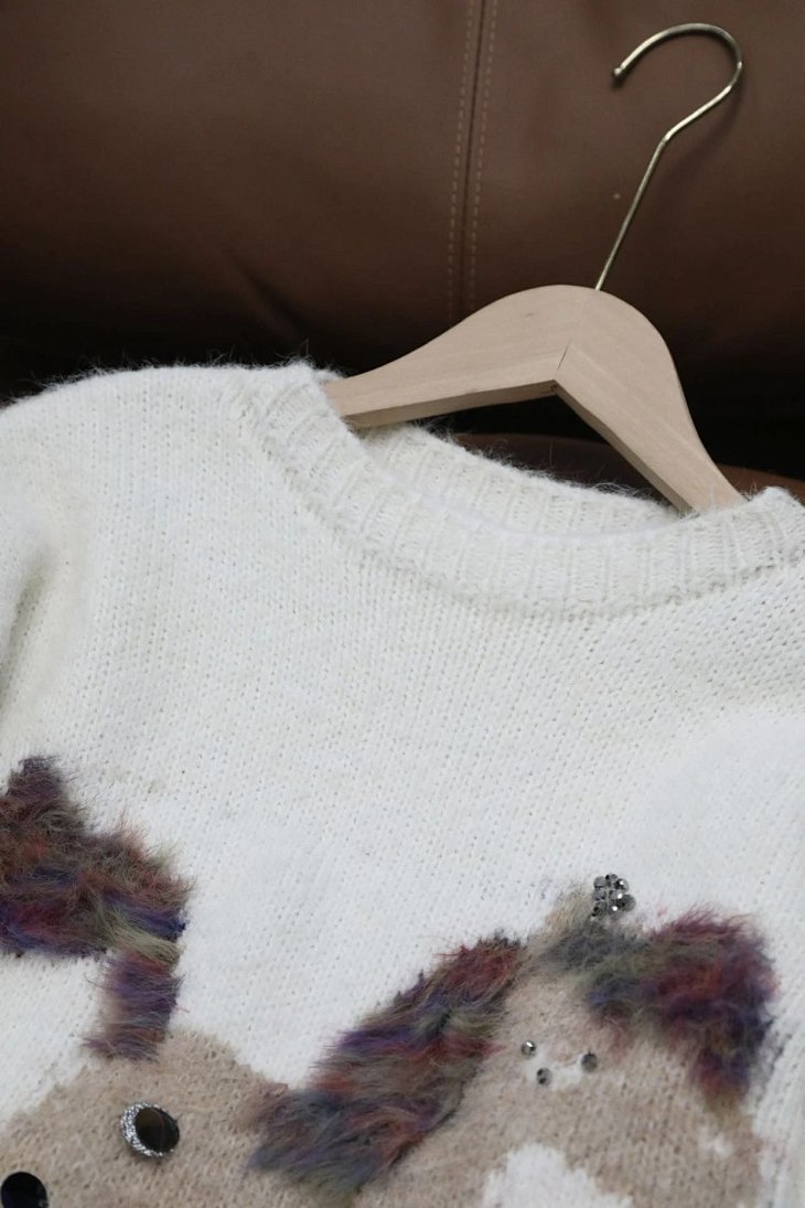 马上有钱~【手缝亮片长毛小马嵌花圆领毛衣】羊驼羊毛面料多重工艺匠心缝制❗️
