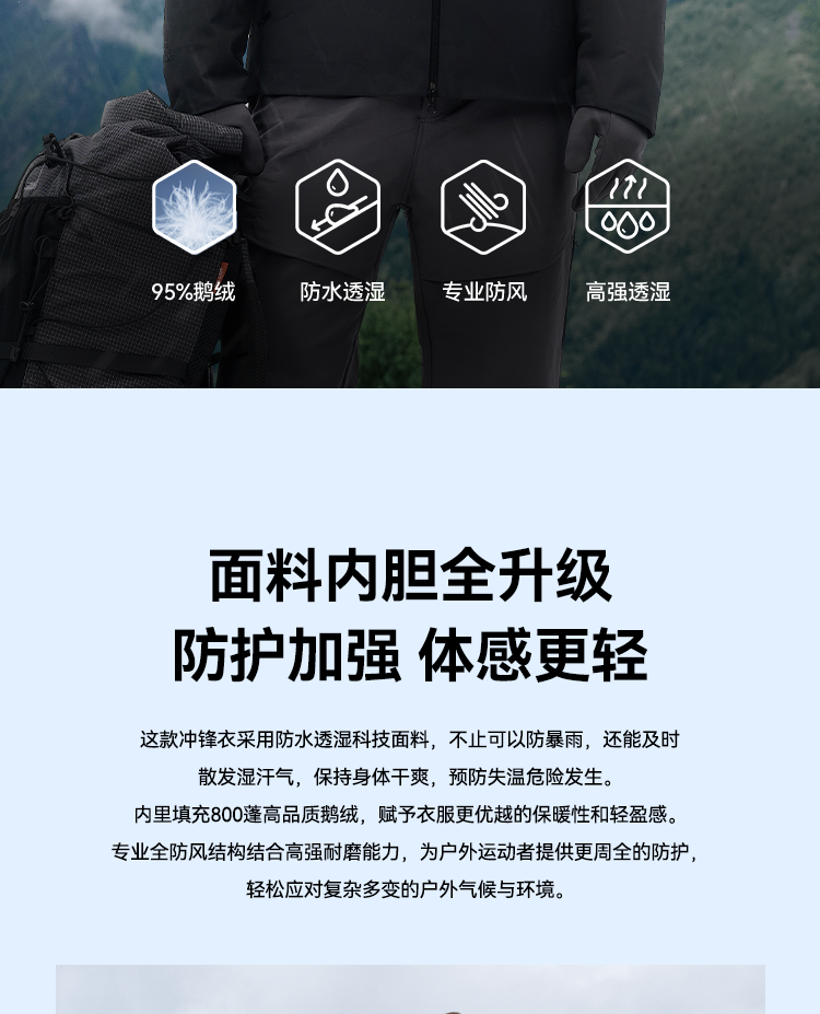 伯希和户外羽绒冲锋衣外套男25新款800蓬鹅绒专业防风耐磨登山服