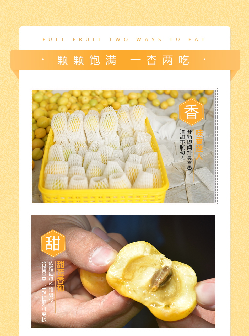 2、到货后小白杏成熟度在8-9成熟,收到货先发黄,软糯的食用