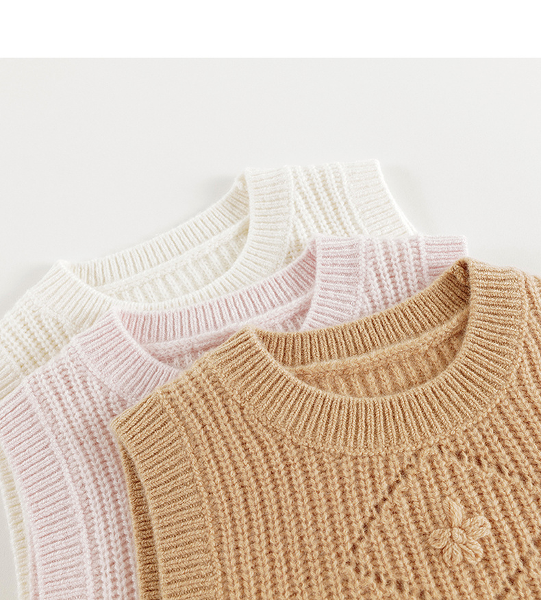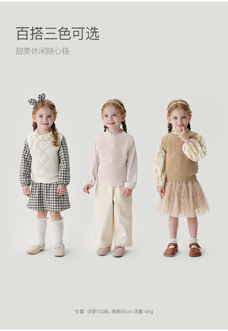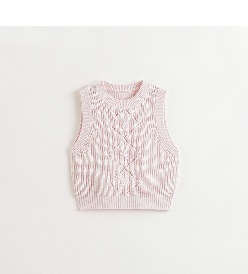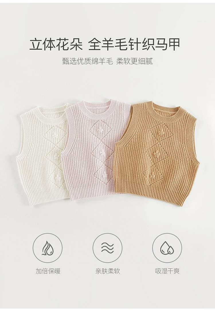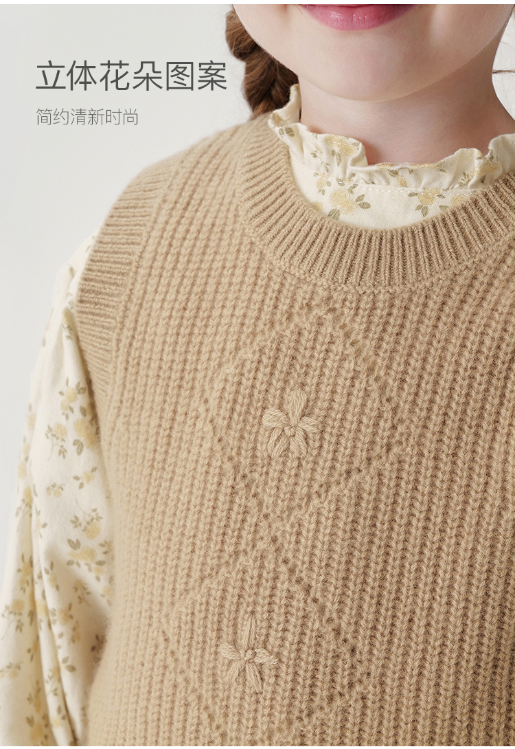 马克珍妮女童清新立体花朵绵羊毛针织马甲2024年秋冬新款241688