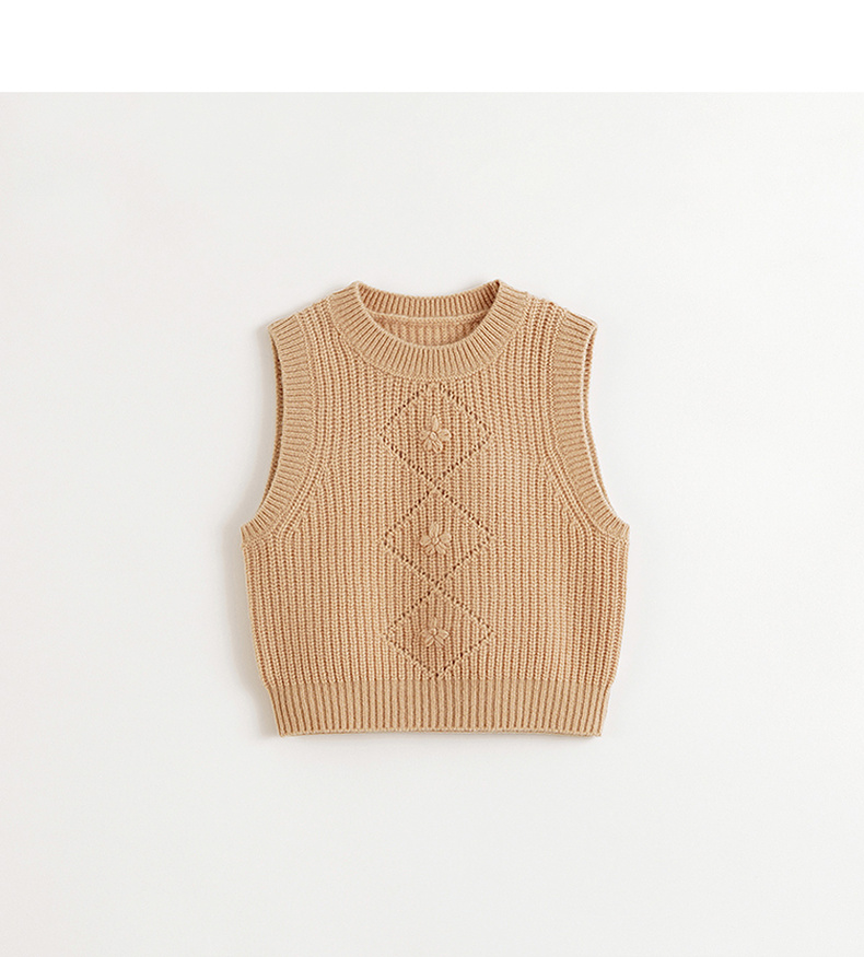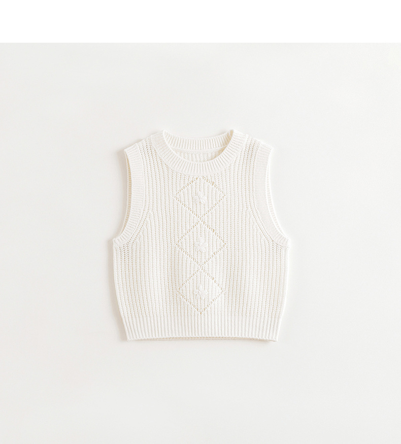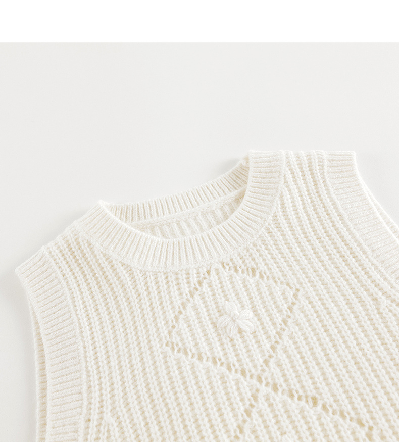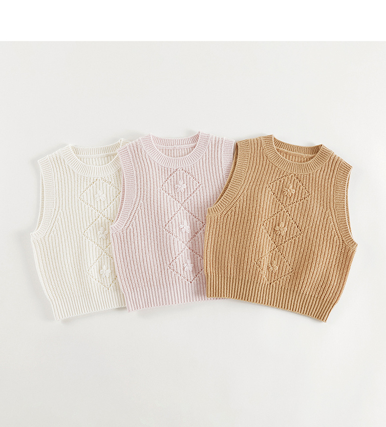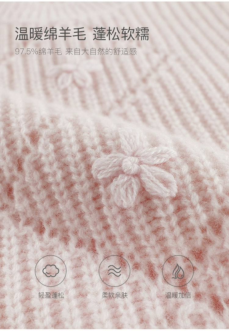 马克珍妮女童清新立体花朵绵羊毛针织马甲2024年秋冬新款241688