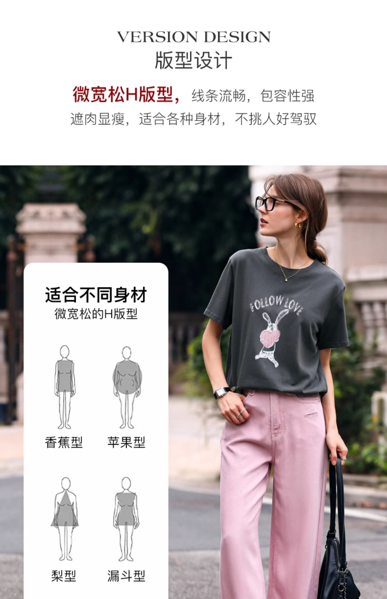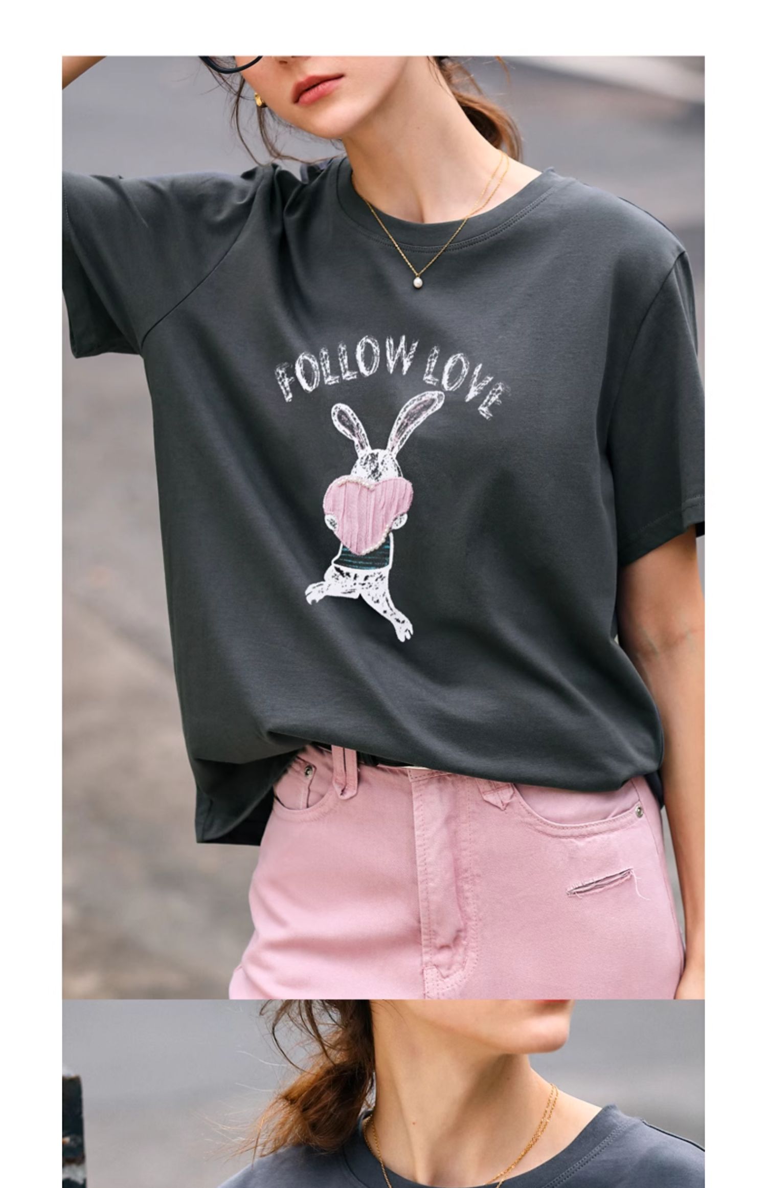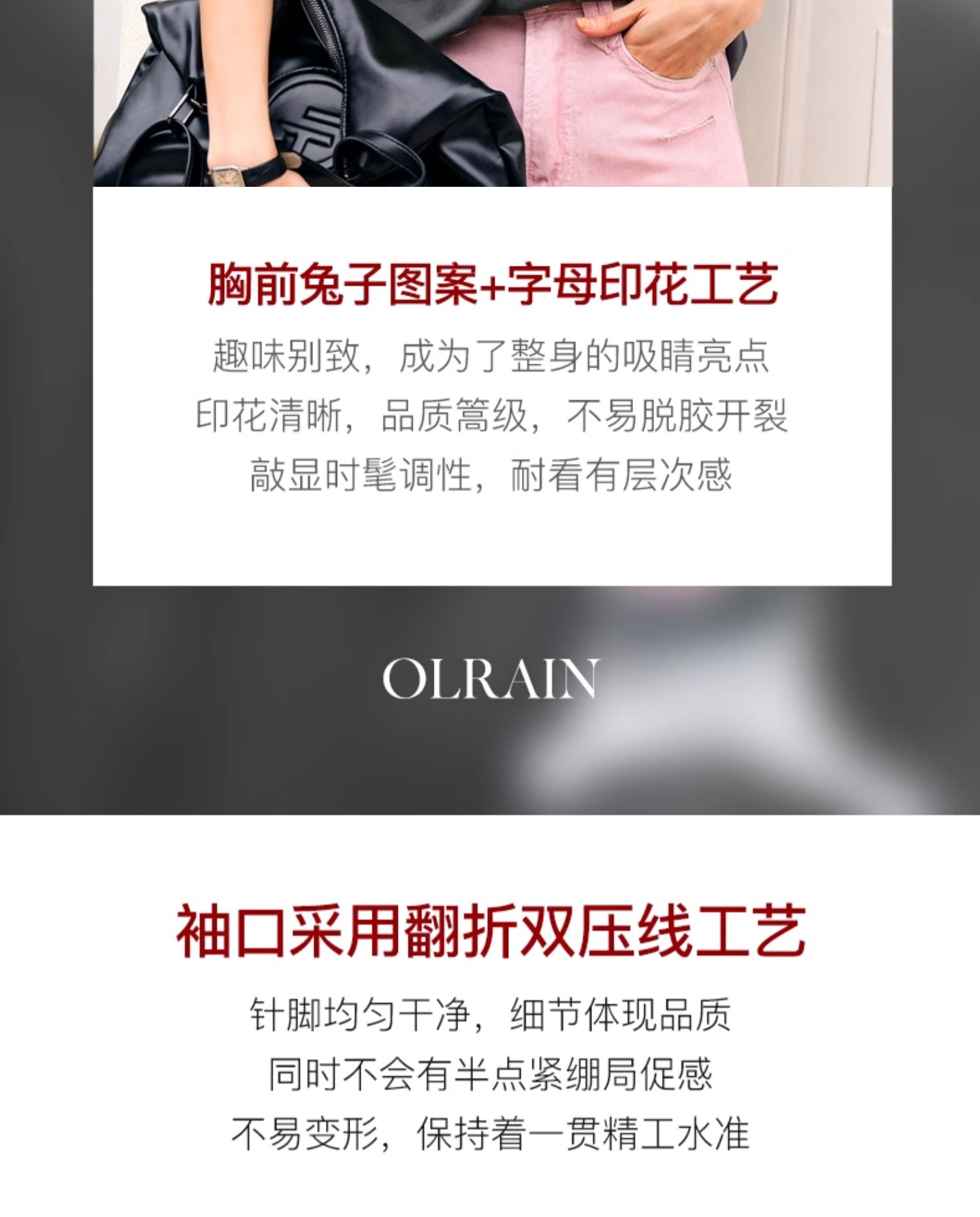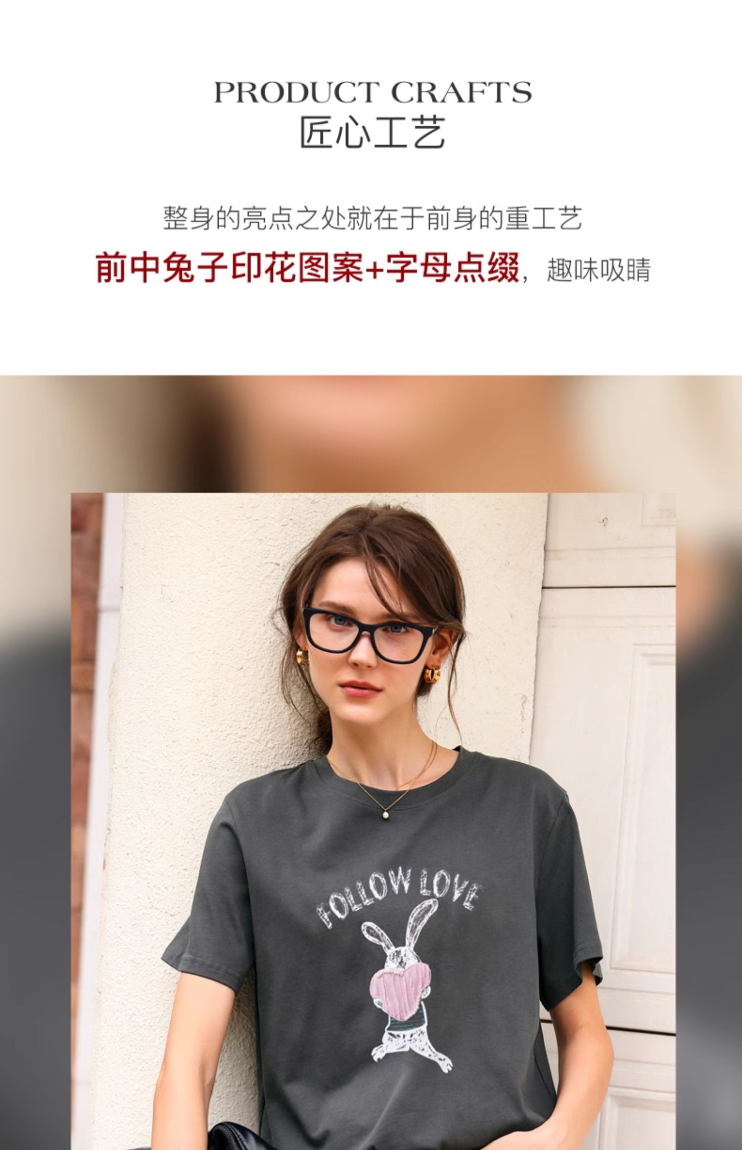 OLrain欧芮儿灰色T恤女春季2024年新款简约百搭宽松印花短袖上衣